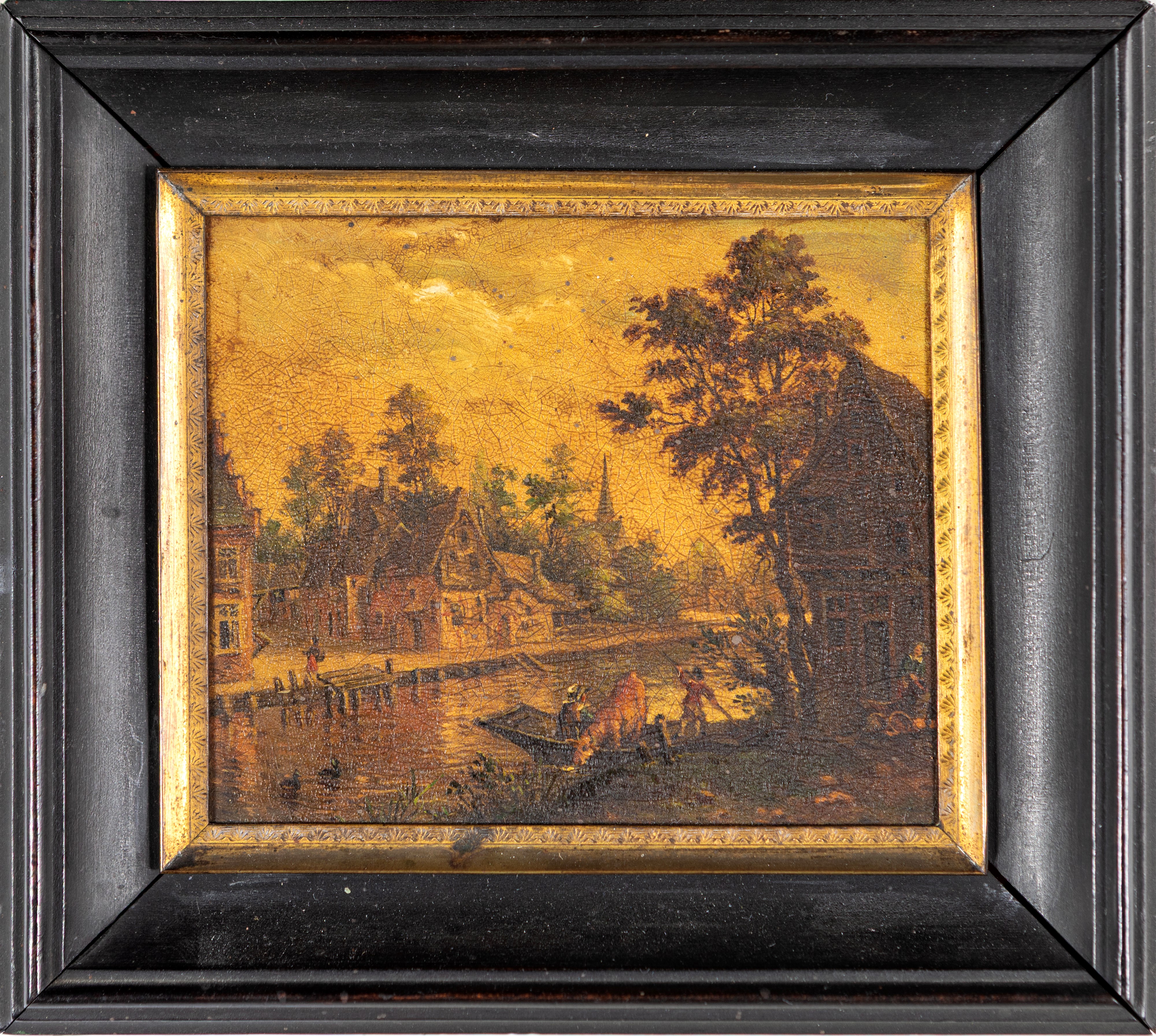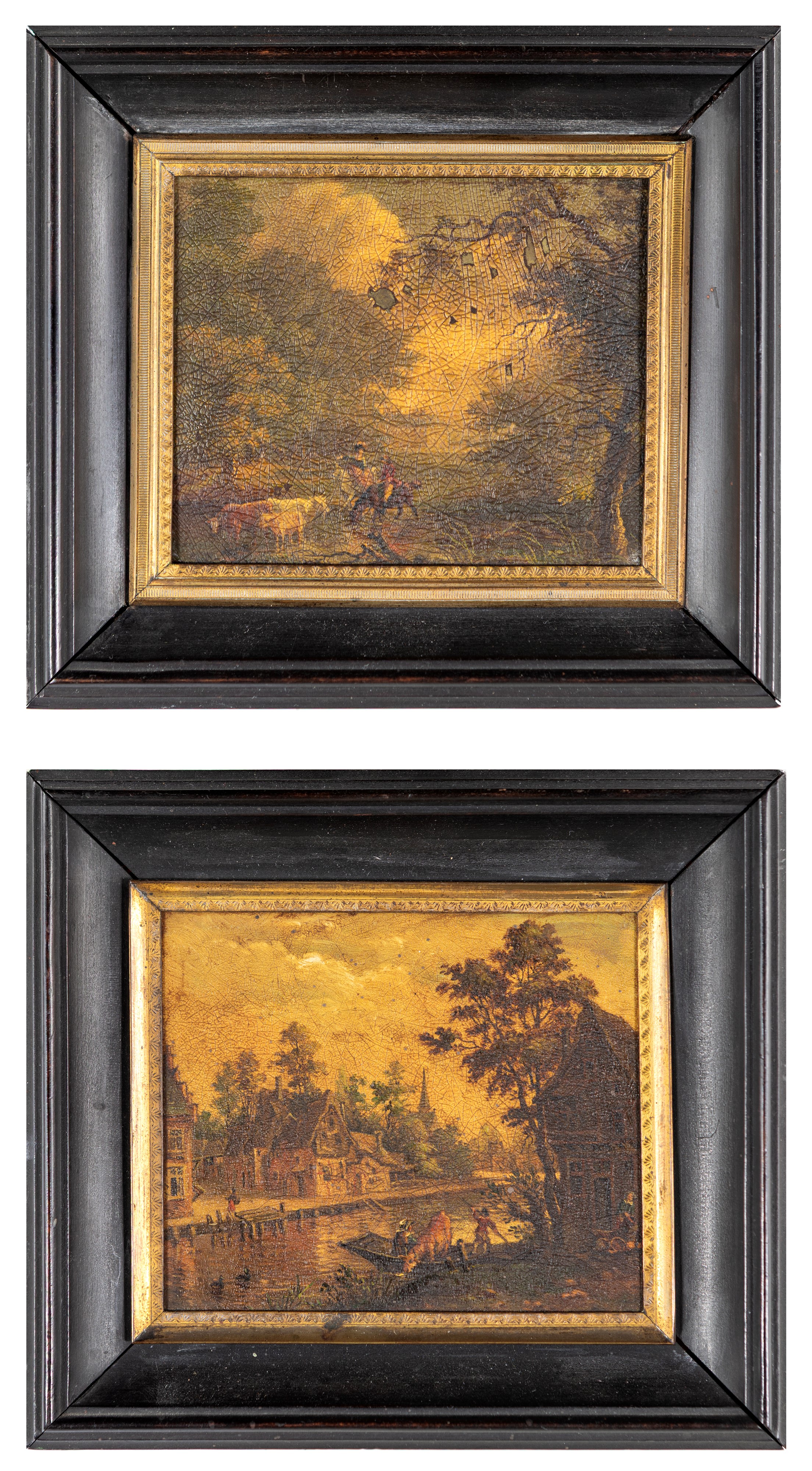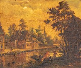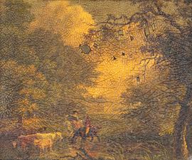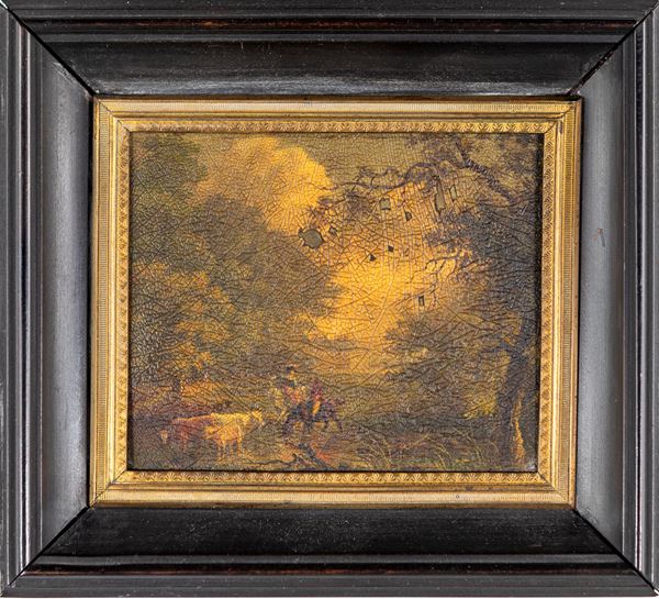 a) Paesaggio di campagna con cavaliere e mucche all’abbeverata
