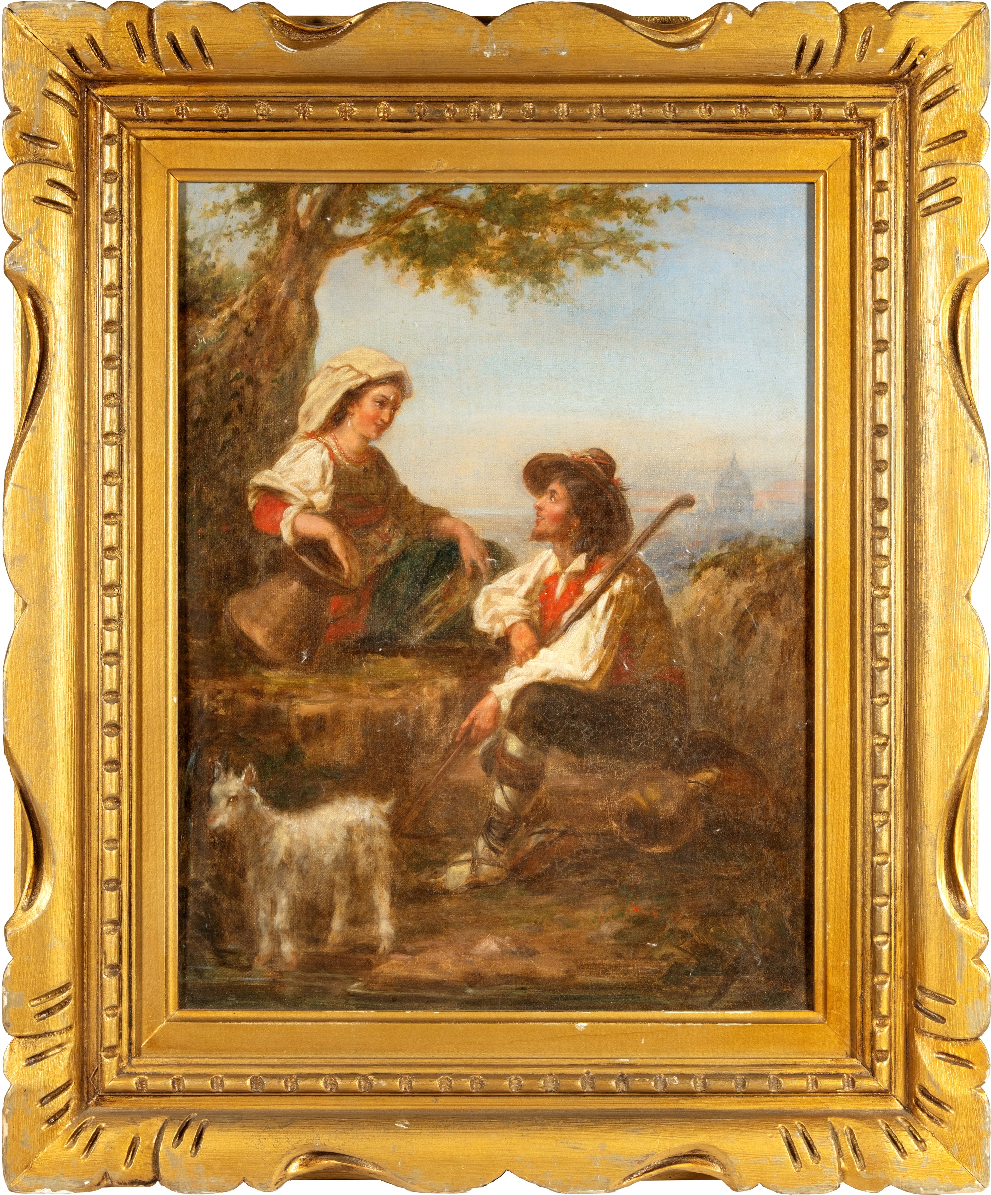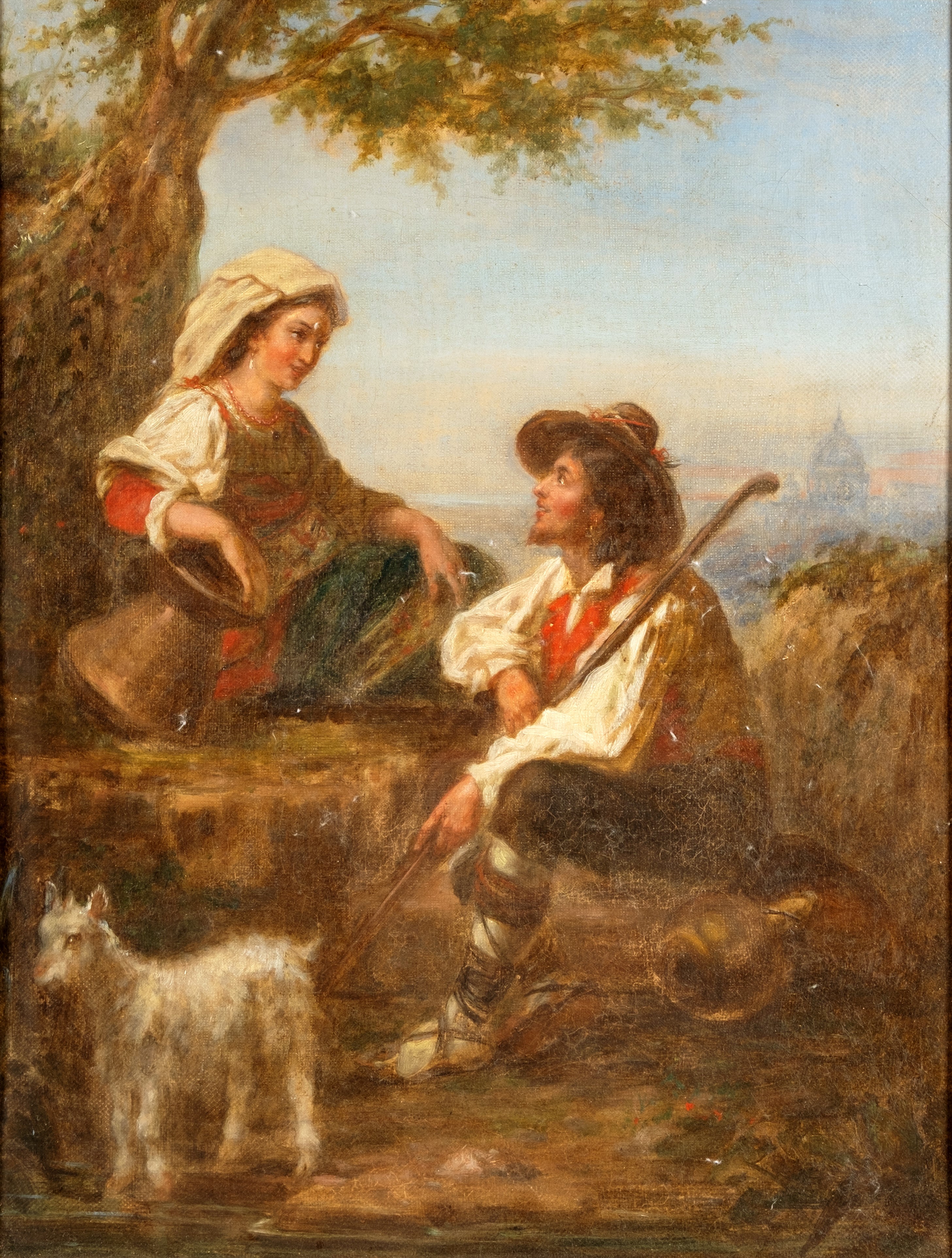 Roma, sosta di due pastorelli con la cupola di S. Pietro in lontananza