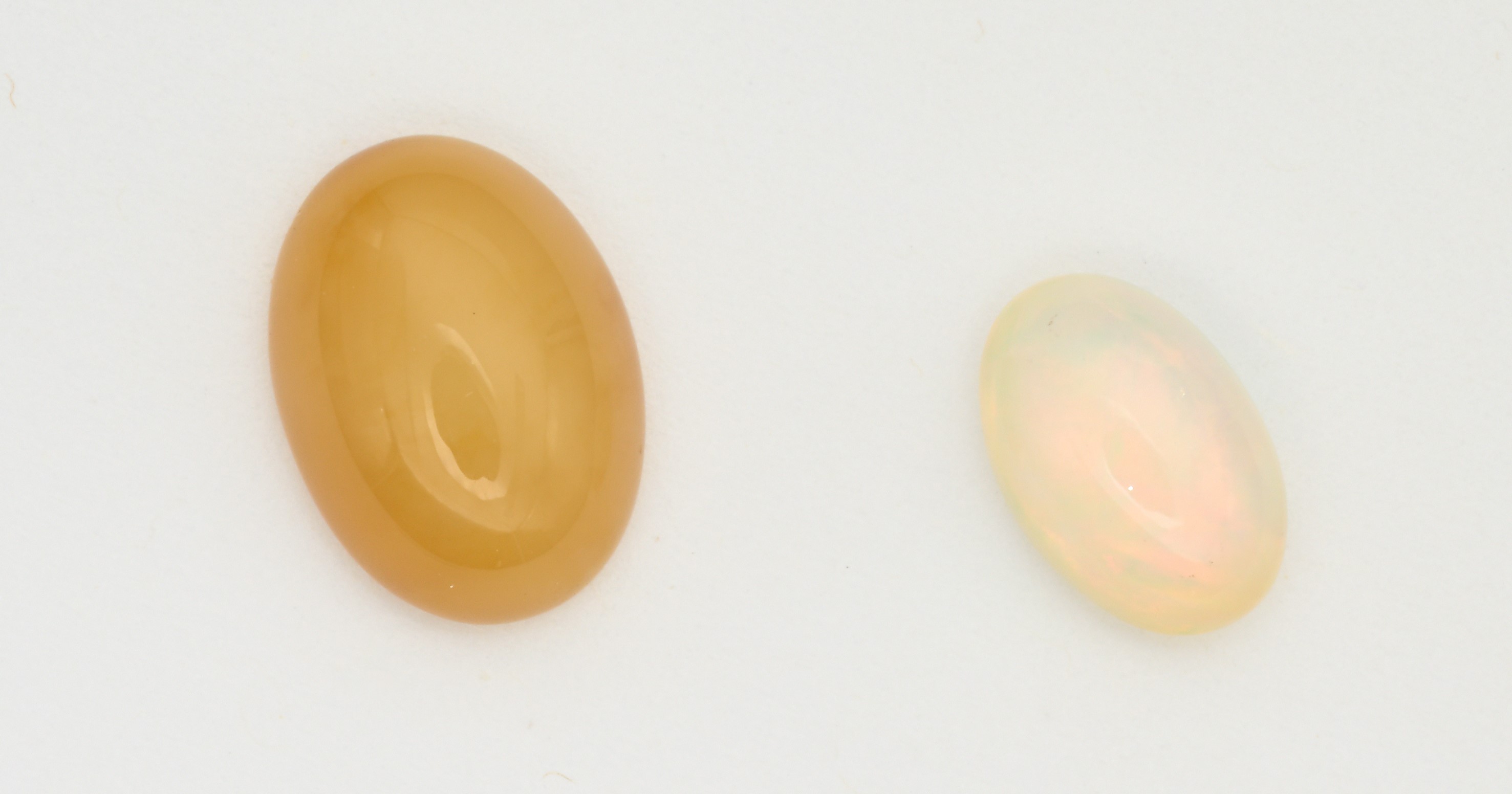 due opali, uno etiope e uno giallo in taglio ovale cabochon