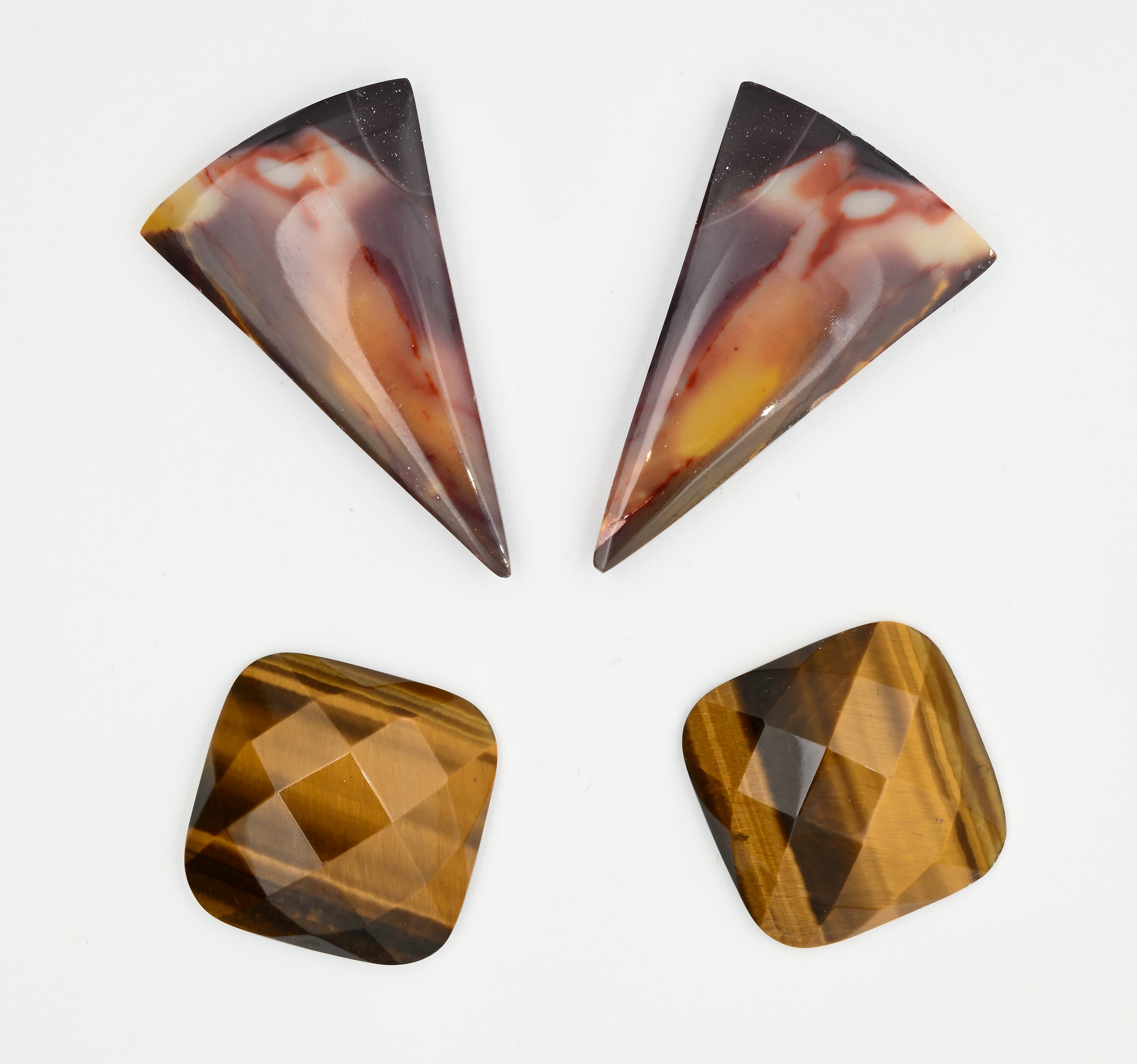 Lotto di 2 occhio di tigre e 2 mokaite (diaspro australiano) in taglio triangolare