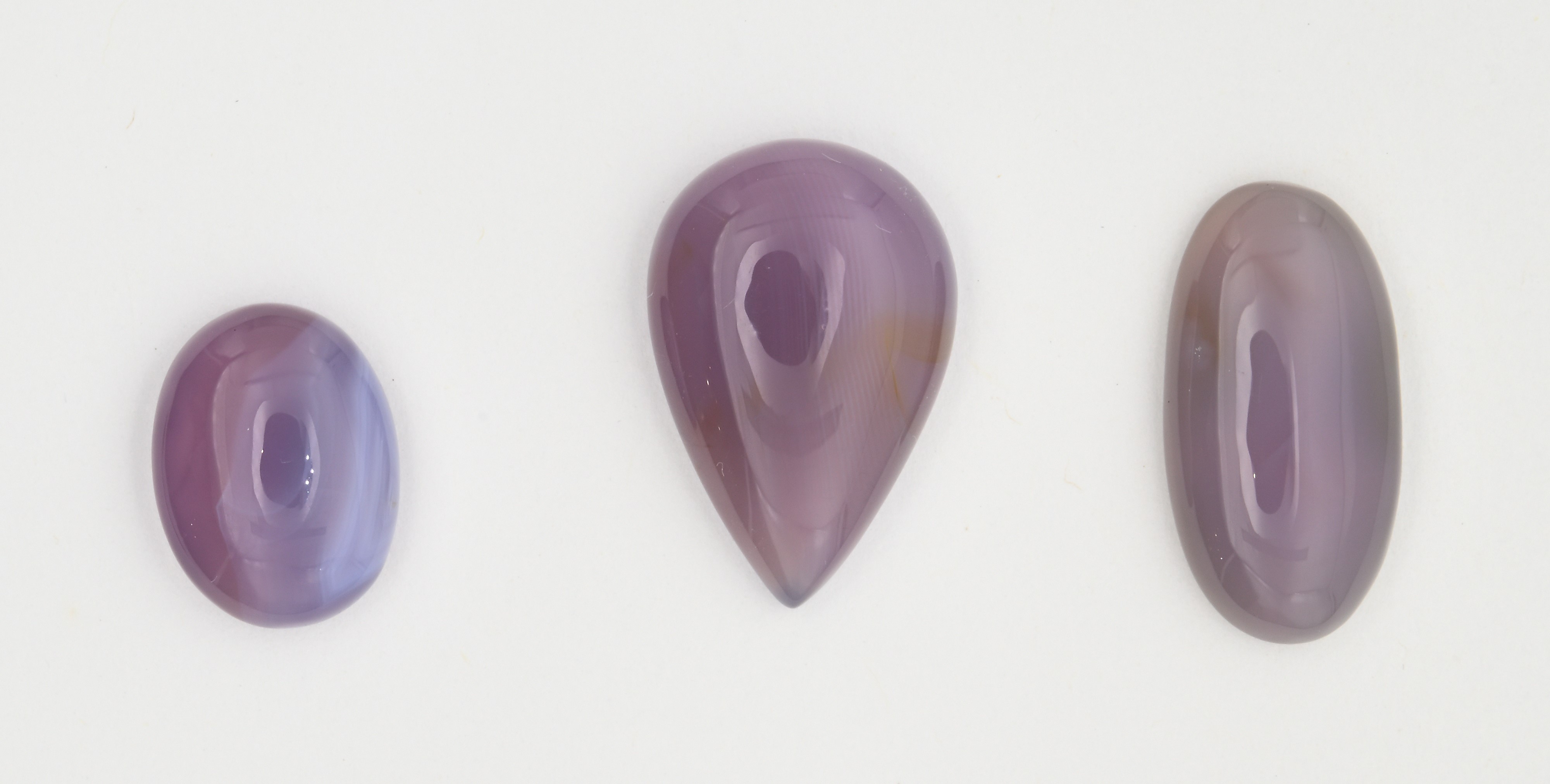 Lotto di 3 calcedonio in forma ovale e goccia taglio cabochon