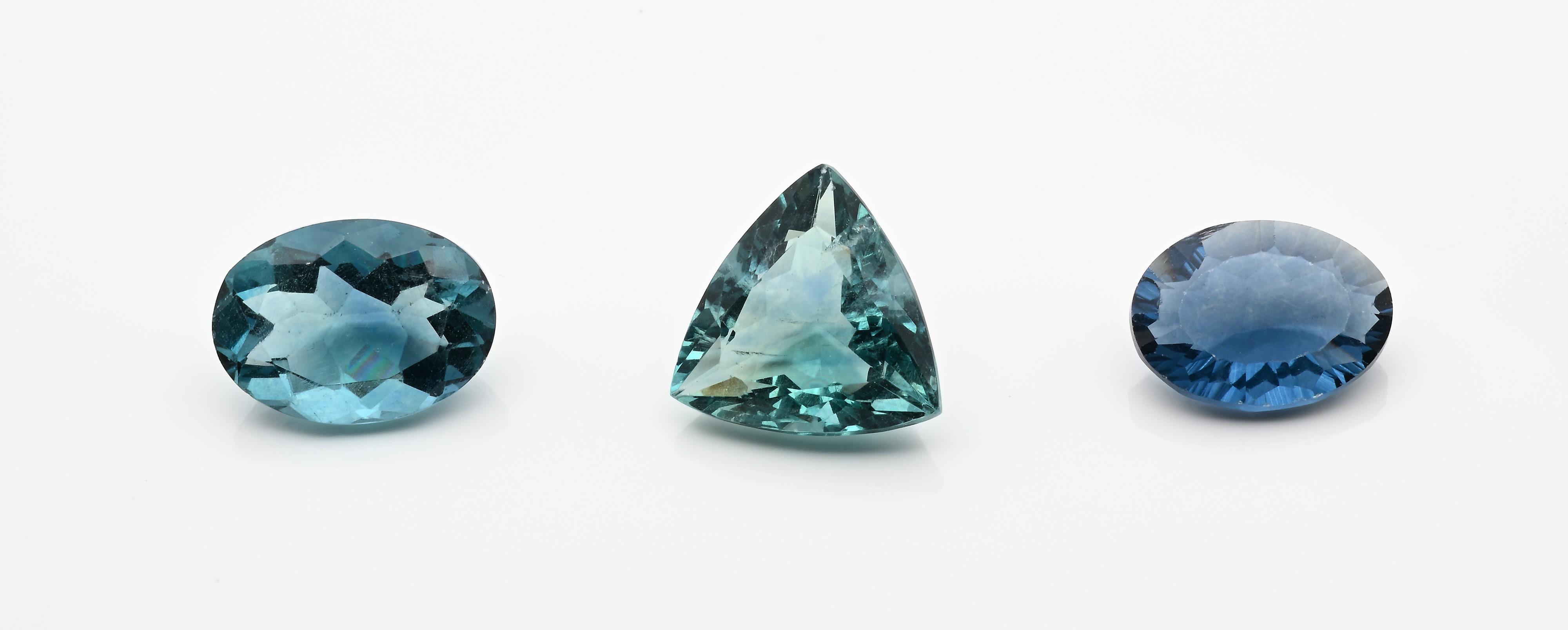 Lotto di 3 fluoriti in taglio ovale e trillion