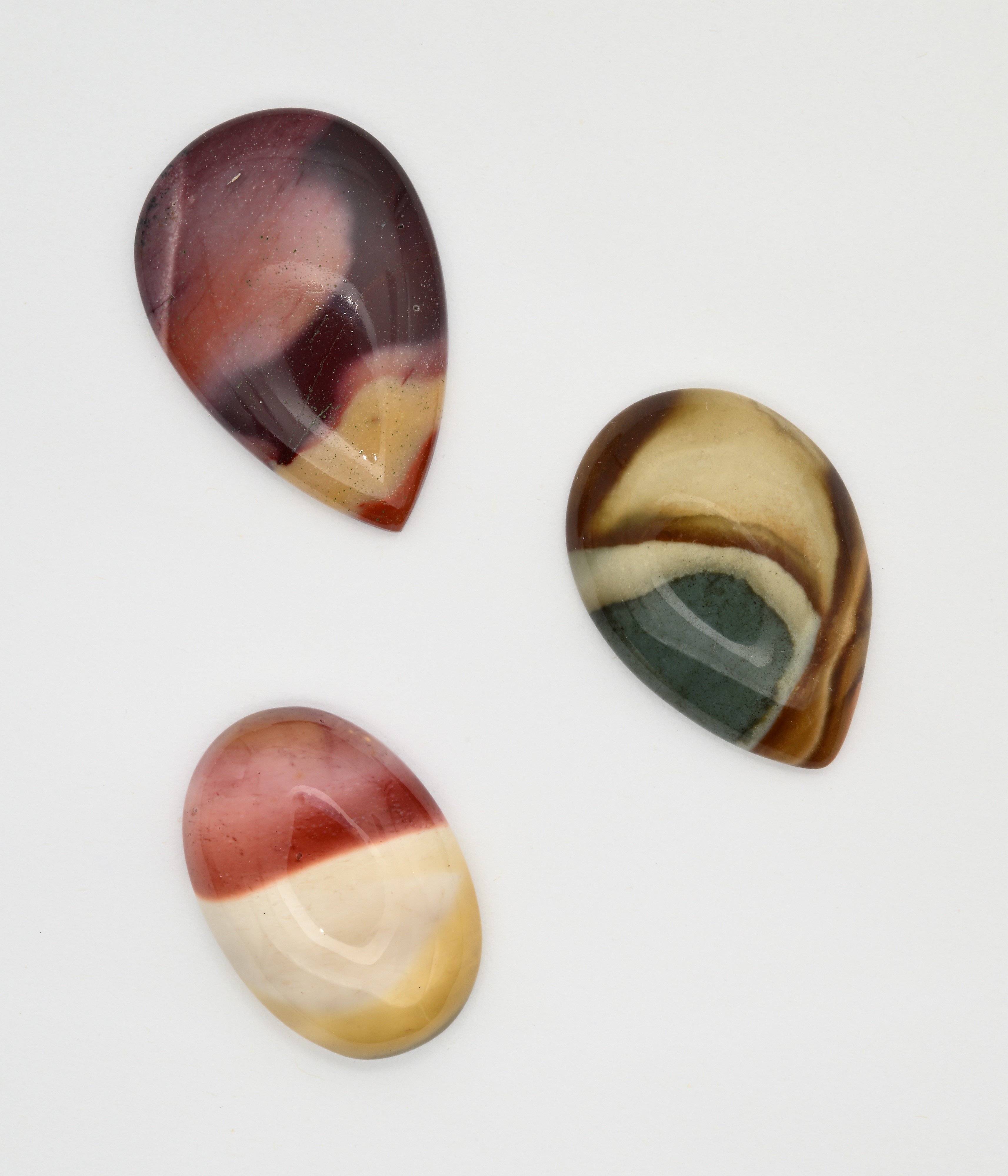 Lotto di 3 mokaiti (diaspro australiano) in taglio goccia e ovale