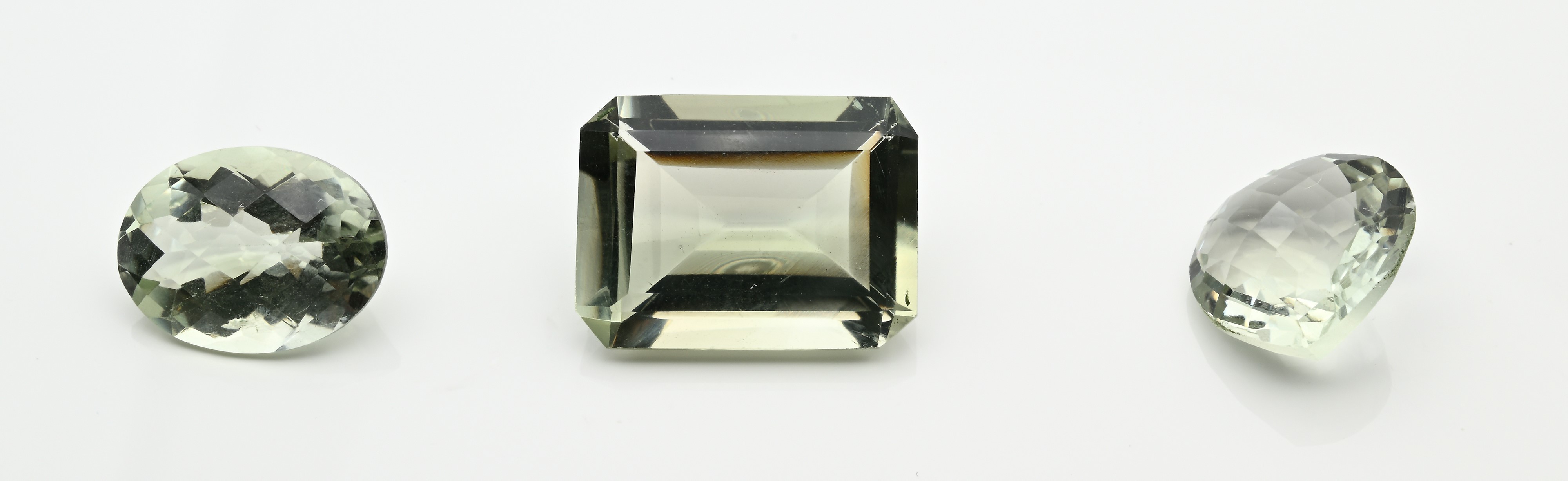 Lotto di 3 presioliti in taglio ovale goccia e smeraldo