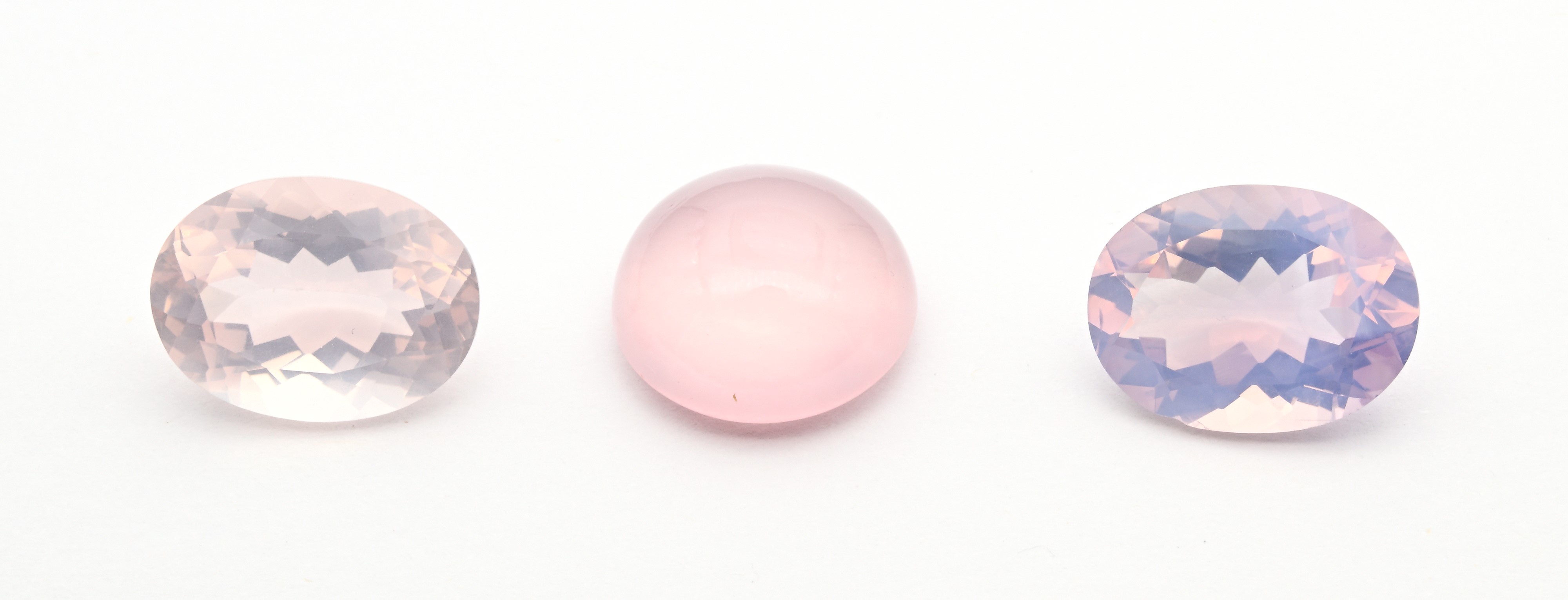 Lotto di 3 quarzi rosa in taglio ovale e cabochon