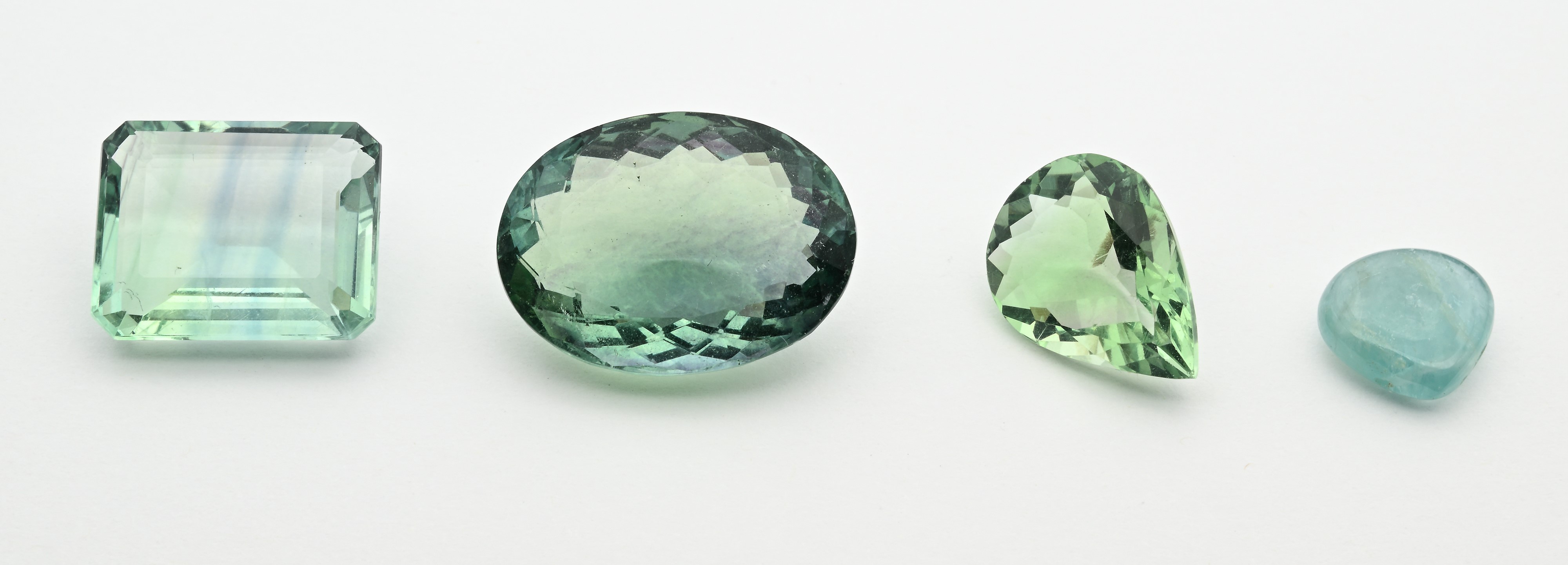 Lotto di 4 fluoriti taglio ovale, goccia e smeraldo