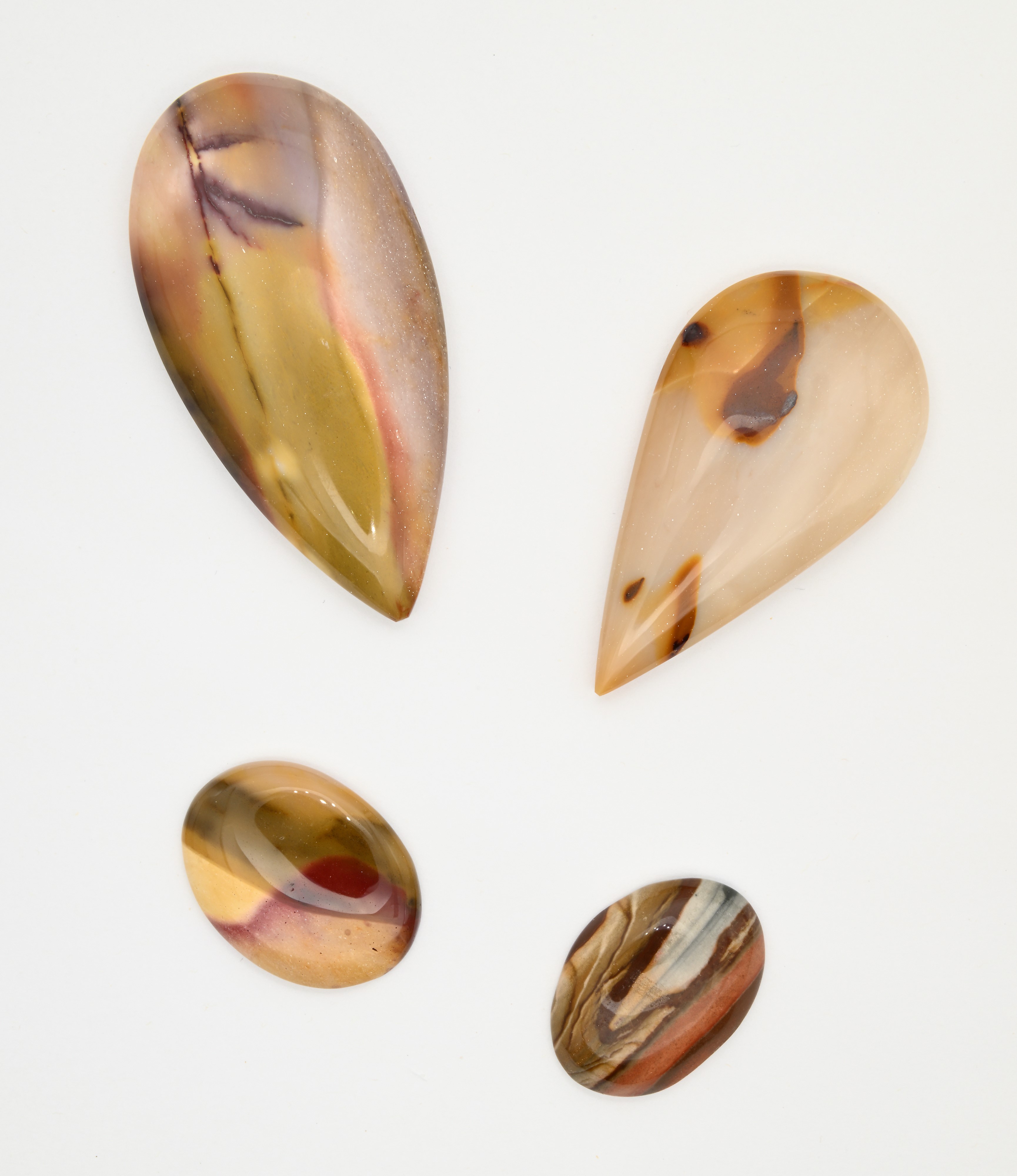 Lotto di 4 mokaiti (diaspro australiano) in taglio ovale e goccia