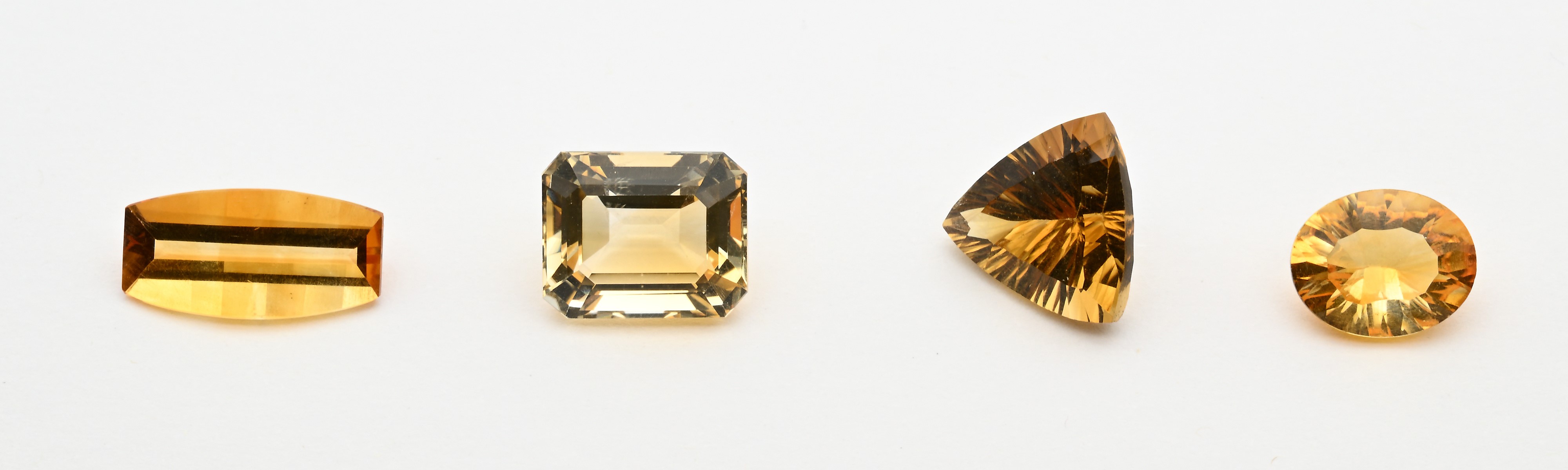Lotto di 4 quarzi citrino in taglio ovale, smeraldo, trillion e fantasia