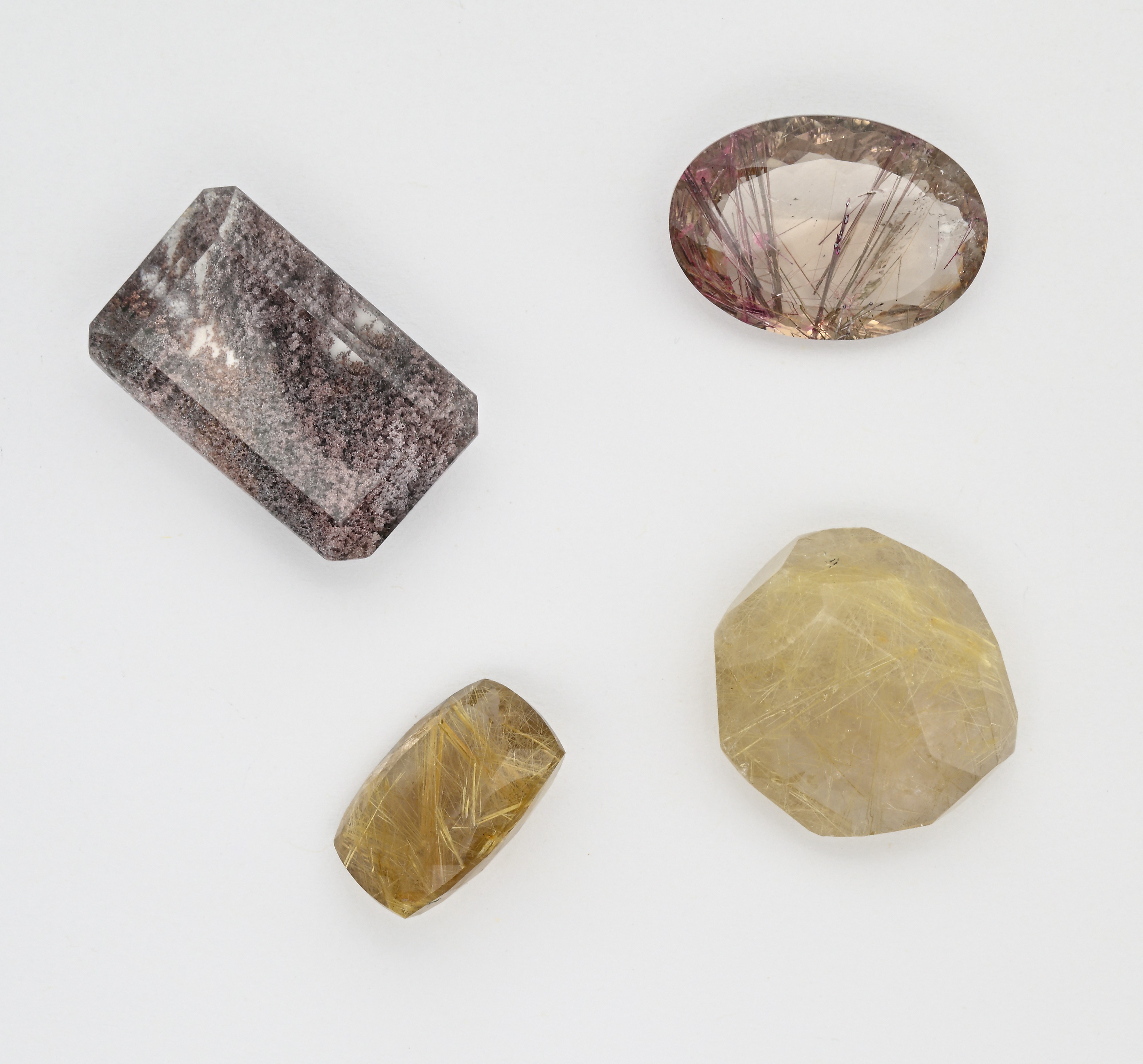 Lotto di 4 quarzi rutilato in taglio ovale, smeraldo e fantasia