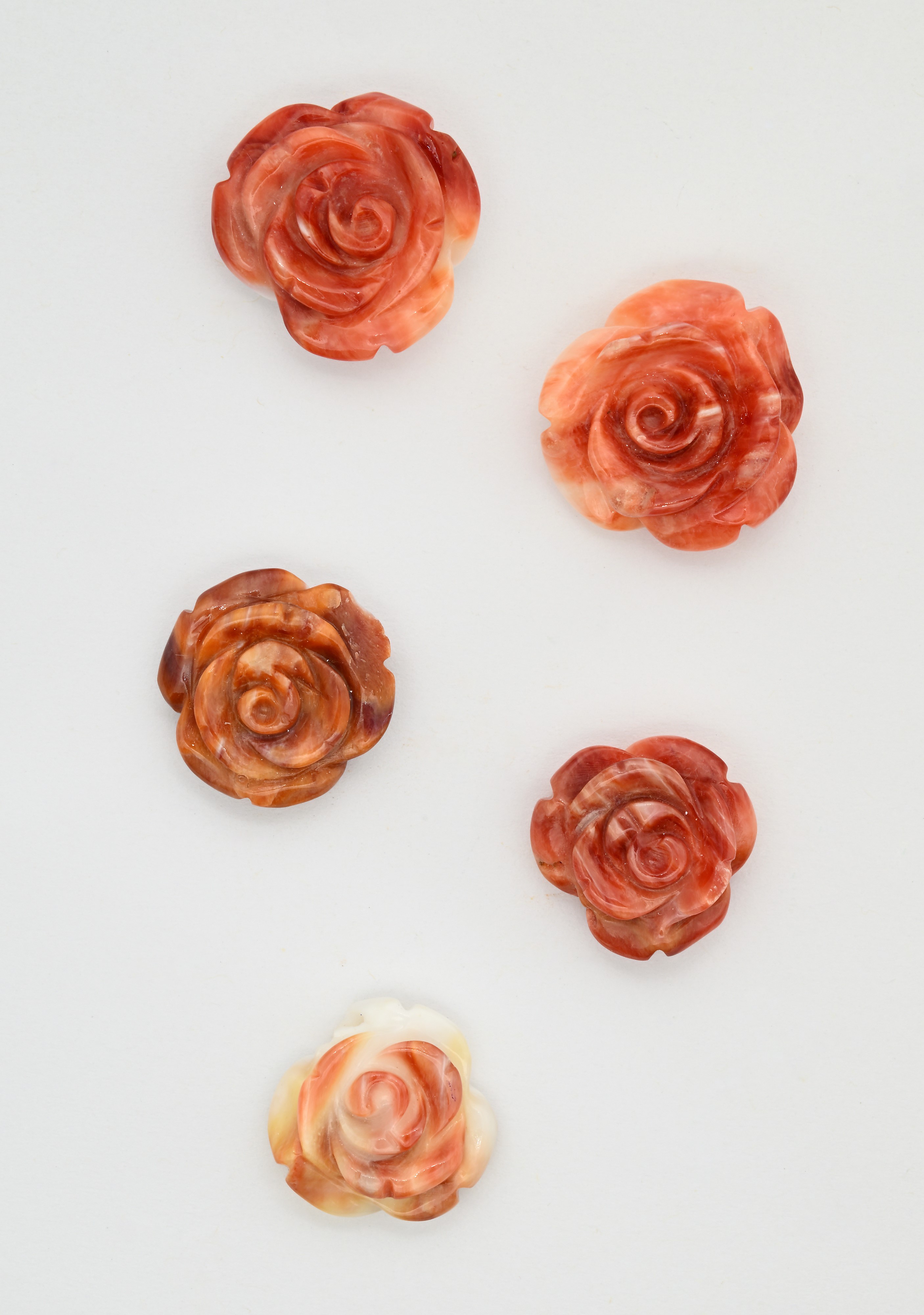 Lotto di 5 madreperle incise a fiore