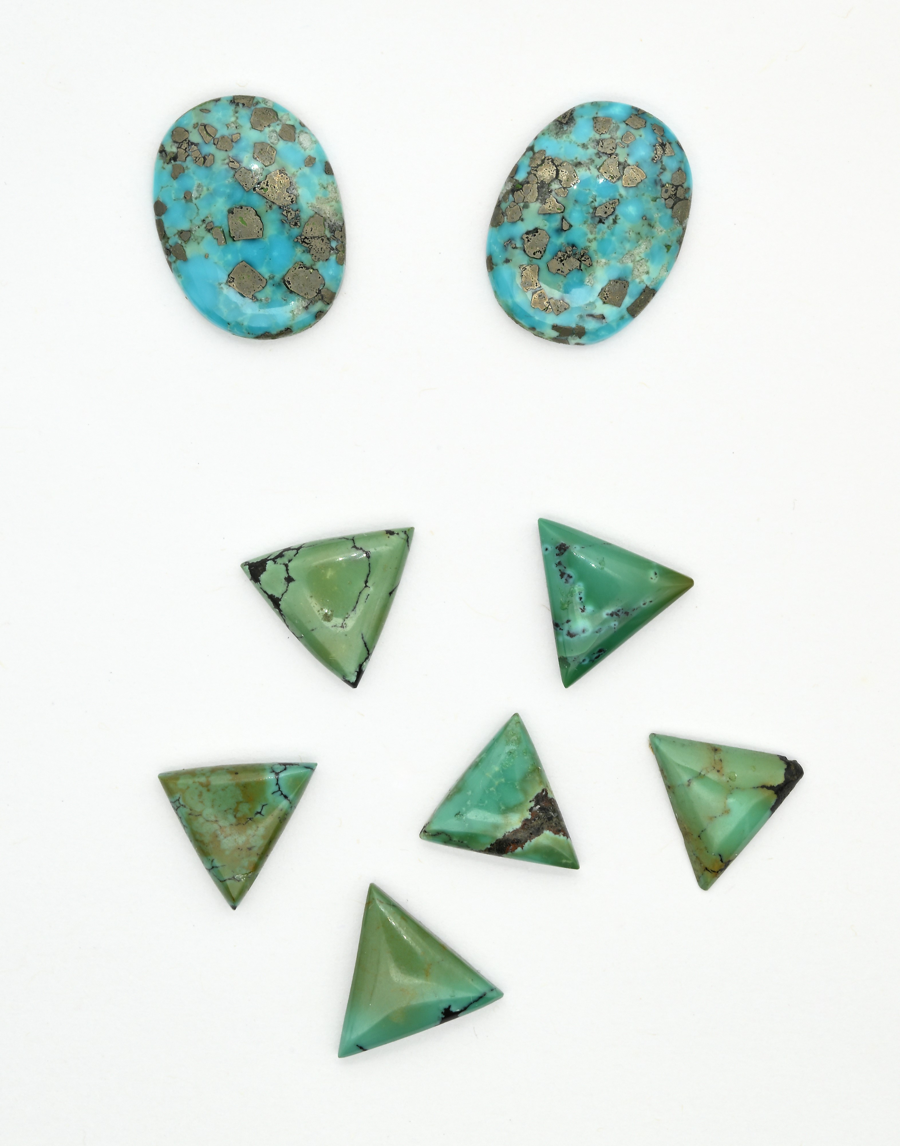 Lotto di 8 turchesi in taglio ovale e fantasia