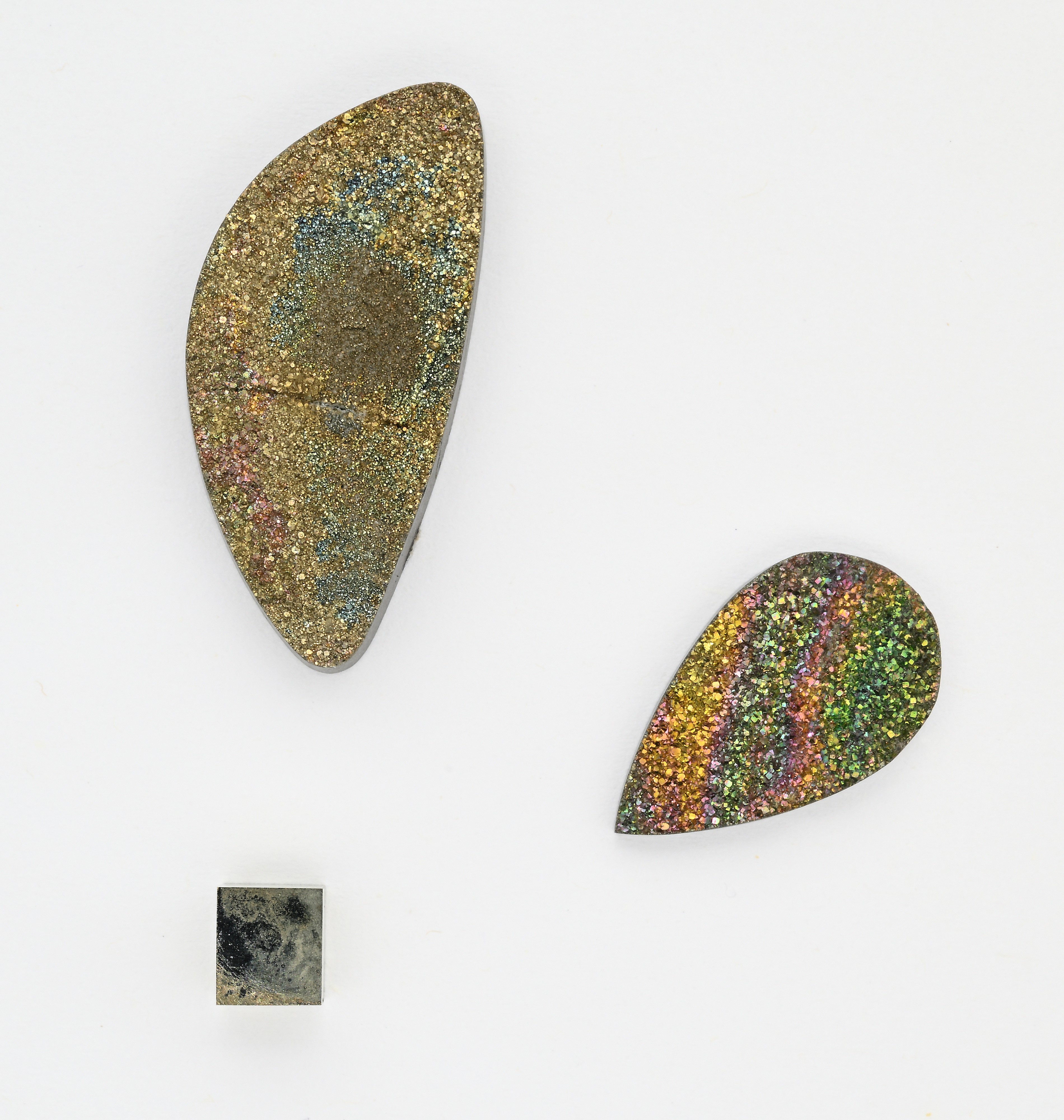 Lotto di pirite a cubo e 2 piriti con drusy