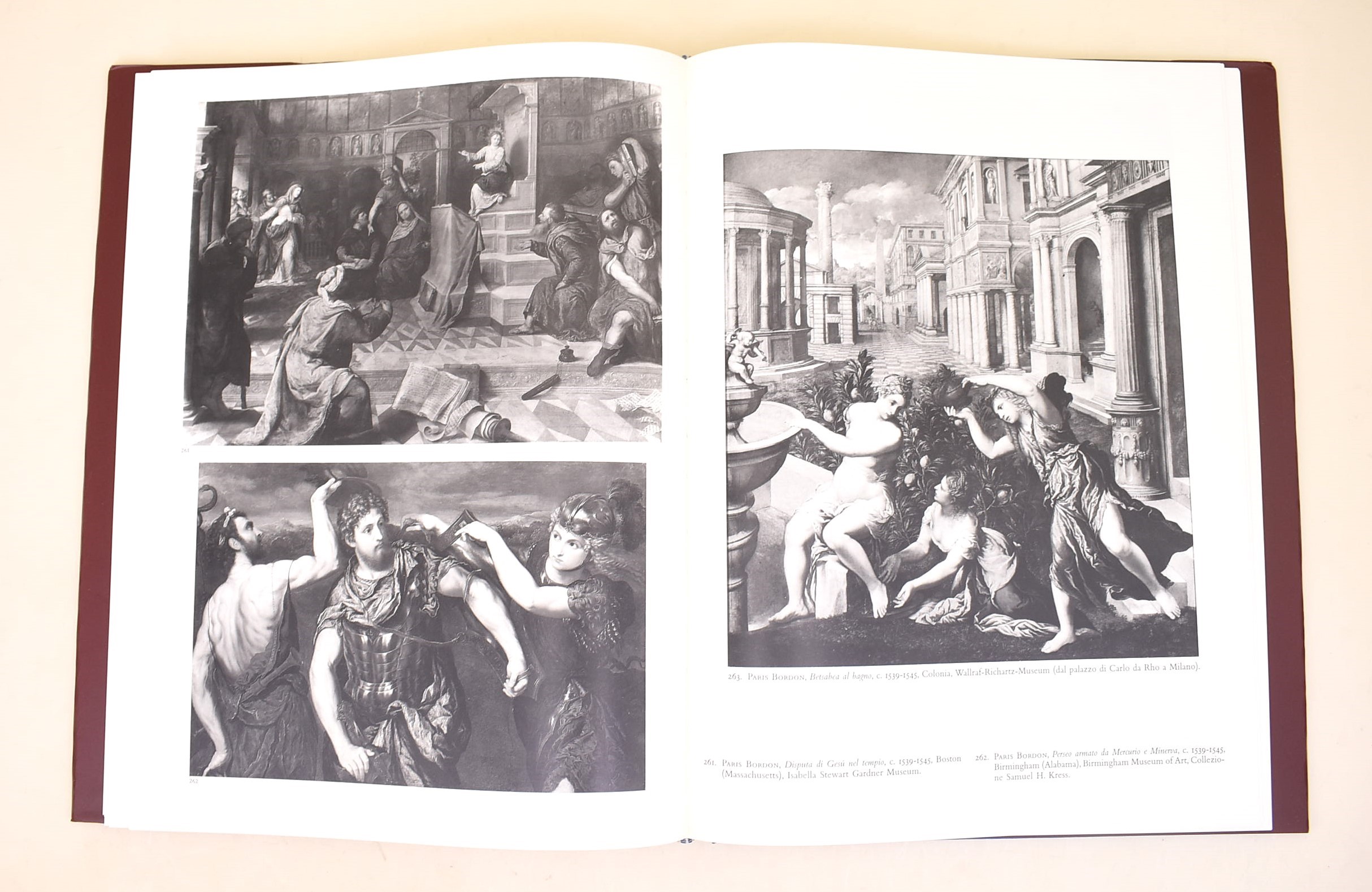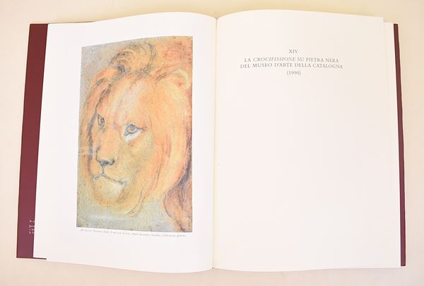 Cittadella, Bertoncello Artigrafiche, 1995-1996. Opera in 2 volumi divisi in 5 tomi. Il primo volume si divide in 2 tomi di testo. Pagine I volume: XVIII, 198 / 199-508. Pagine II volume: XXXVIII + 1-525 illustrazioni / XXIX, 526-999 illustrazioni, 61 / XXIX, 1-364. Copertina rigida in piena tela con sovracoperta. Ottimo stato di conservazione. Monumentale opera di Alessandro Ballarin dedicata a Jacopo Bassano, tra i più autorevoli studi mai pubblicati sull’artista. I cinque tomi ricostruiscono in modo sistematico il percorso pittorico, la cronologia, le varianti di bottega e il vastissimo catalogo delle opere, con un apparato iconografico di eccezionale ampiezza. Opera fondamentale per lo studio della scuola bassanesca e del Rinascimento veneto, considerata riferimento imprescindibile in ambito specialistico.