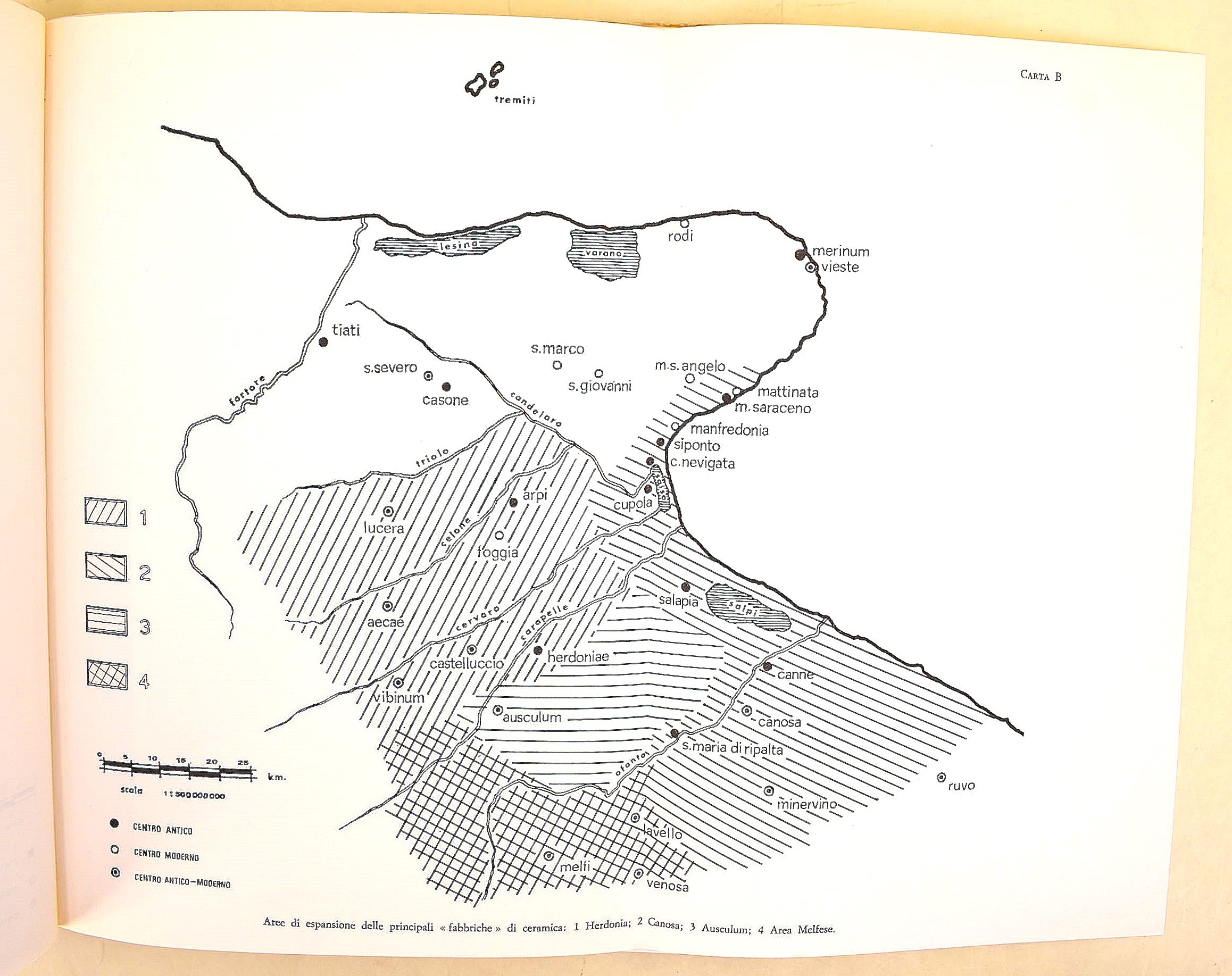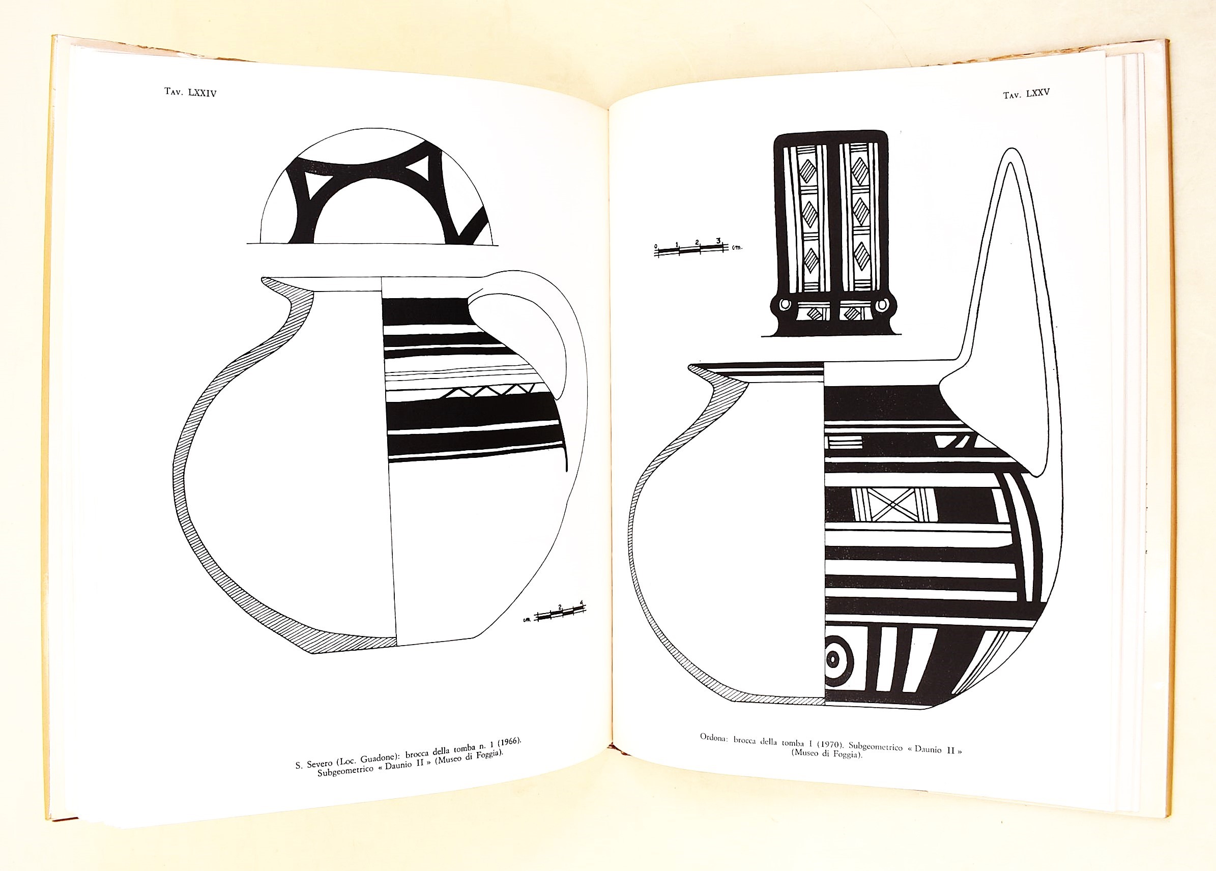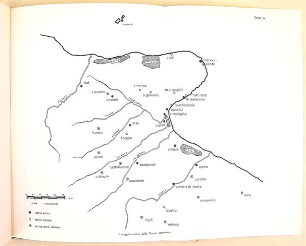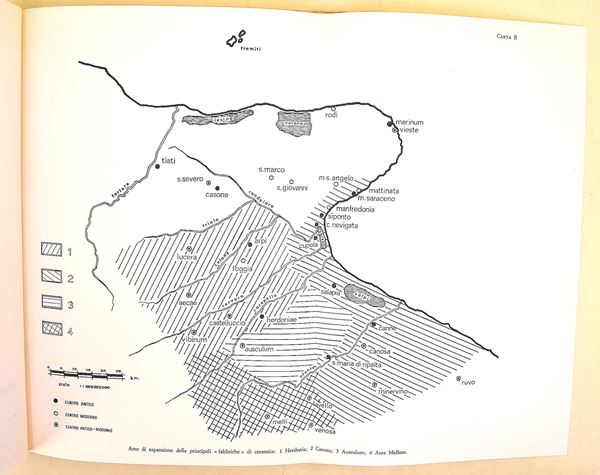 De Juliis, Ettore M.: La ceramica geometrica della Daunia, Firenze, Sansoni, 1977. In-4° (301x237 mm). Pagine: 98 + 3 mappe ripiegabili + CIX pagine di tavole sia in bianco e nero che a colori. Copertina rigida in piena tela editoriale con sovracoperta. Ottimo stato di conservazione.