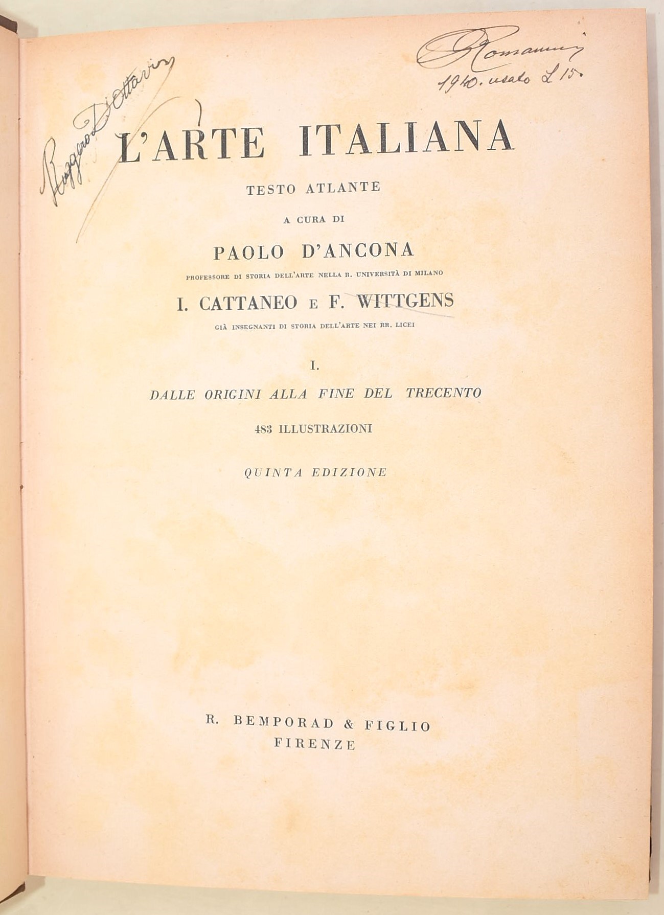 L’arte italiana. Testo atlante a cura di Paolo D’Ancona, 1934