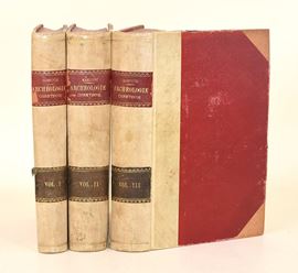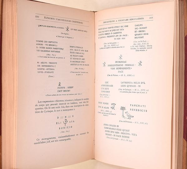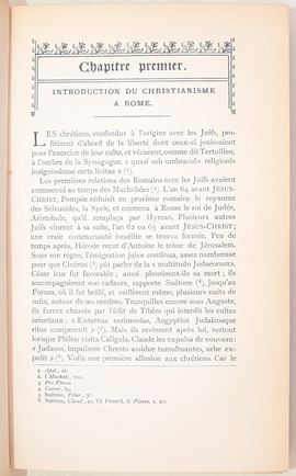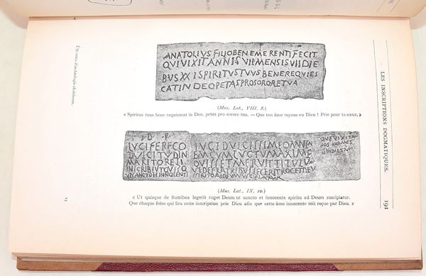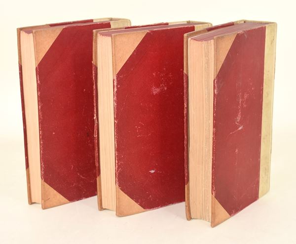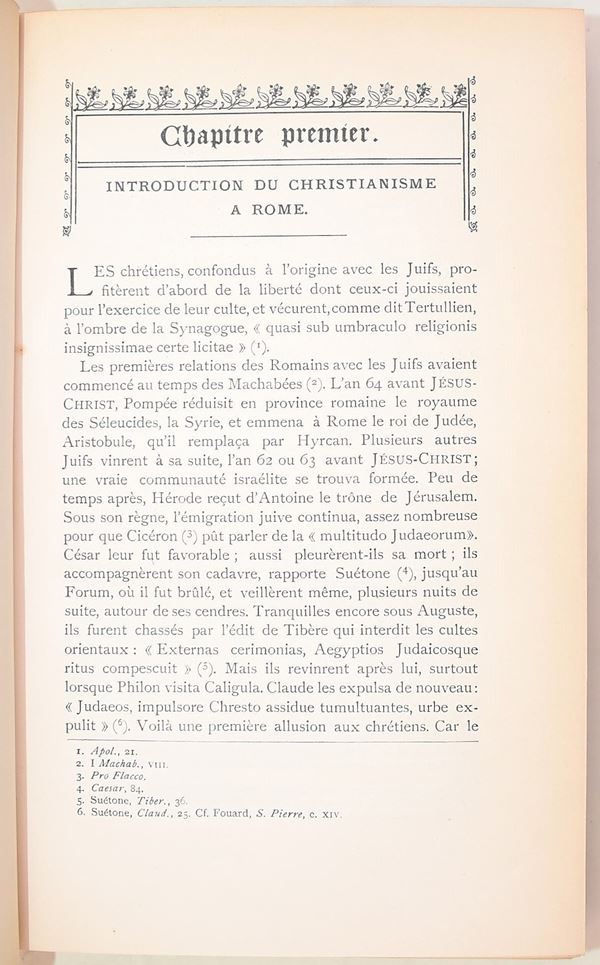 Parigi-Roma, Desclée, Lefebvre & Cie, Éditeurs, 1905. In-8° (229x133 mm). Opera in 3 volumi. Pagine: XXXIV, 409 / VII, 590 / XXXIX, 530. Rilegatura in mezza pergamena con angoli. Dorso con 2 tasselli recanti autore, titolo e numero del volume. Tagli superiori in rosso. Testo in francese. Nel secondo e terzo volume è presente una carta ripiegata. Edizione illustrata. Firma di possesso «E. Sestieri». Edizione illustrata.