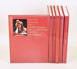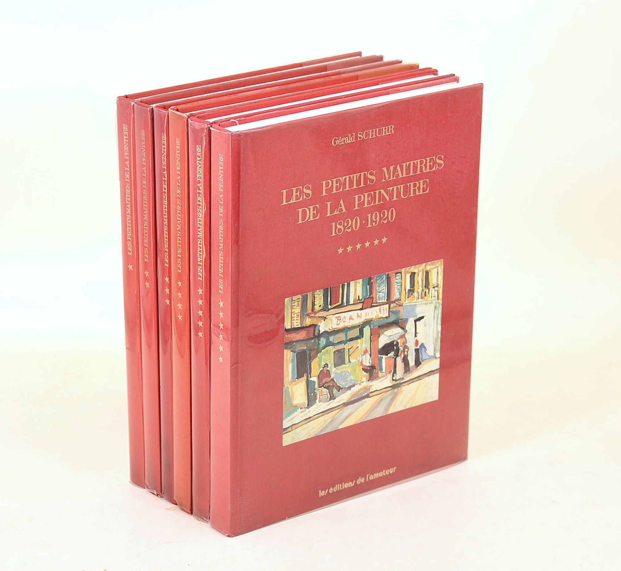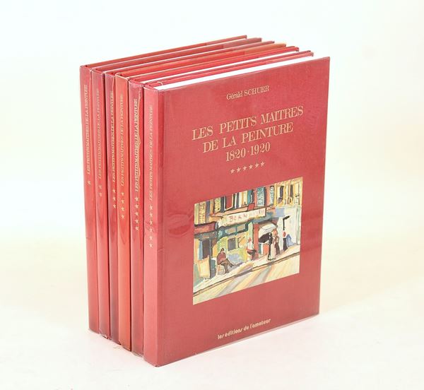 Parigi, Les éditions de l’amateur, 1975-1985. In-4° (321x250 mm). Opera in 6 volumi. Pagine: 160 / 150 / 175 / 189 / 189 / 239. Copertina rigida in piena tela editoriale. Illustrazioni apposte ai piatti anteriori. Edizioni illustrate. Ottimo stato complessivo. Volumi con protezione acetata. Testo in francese. Ampia opera in sei volumi dedicata ai cosiddetti “petits maîtres” della pittura europea tra XIX e inizio XX secolo. L’autore raccoglie studi, schede biografiche e apparati iconografici relativi a numerosi artisti oggi meno noti ma attivi nel panorama figurativo tra accademismo, realismo e primi sviluppi della modernità. Pubblicazione illustrata di carattere storico-critico e repertoriale, utile per la conoscenza e la rivalutazione di pittori dell’Ottocento e del primo Novecento.