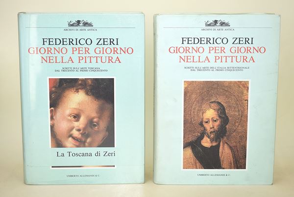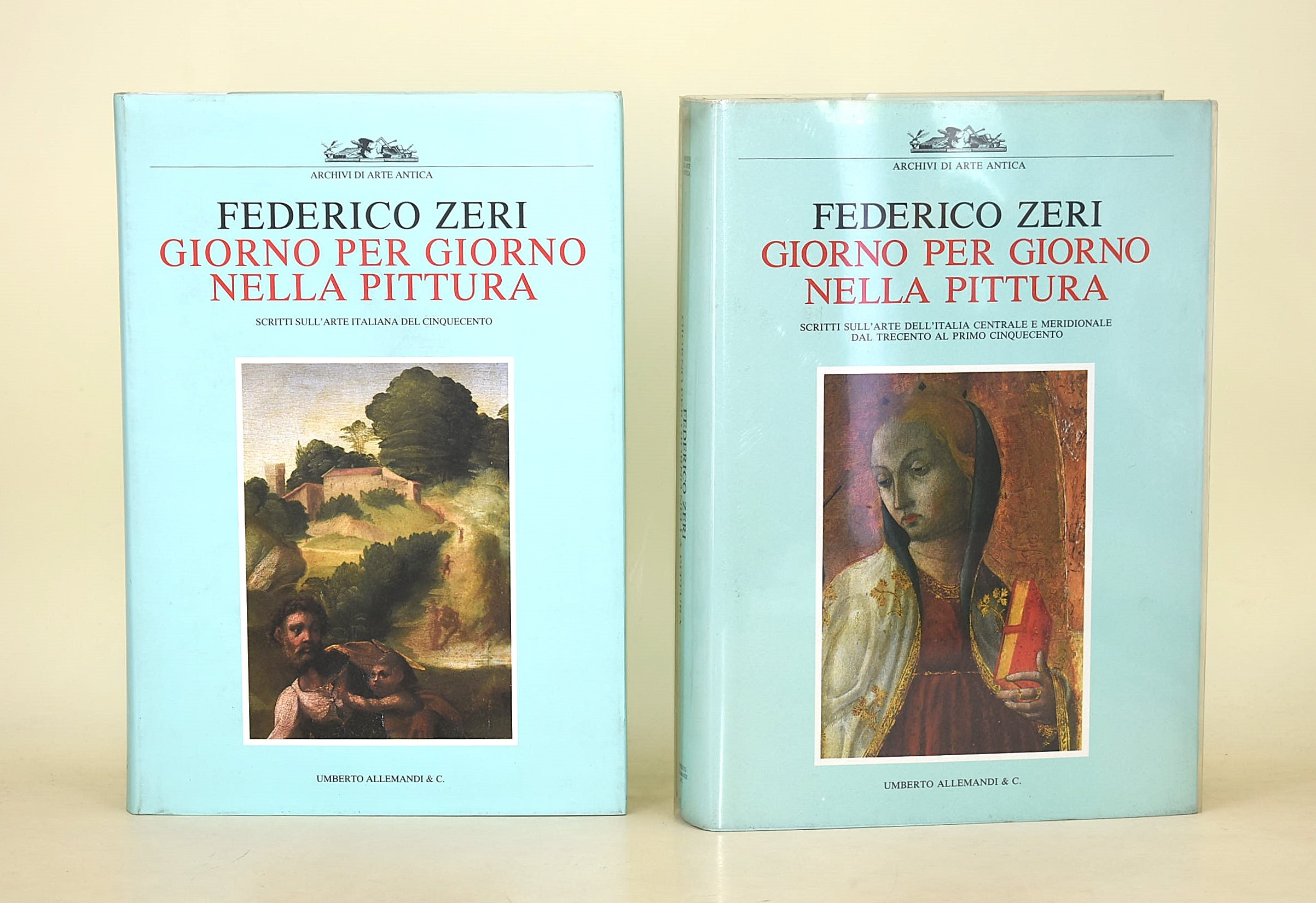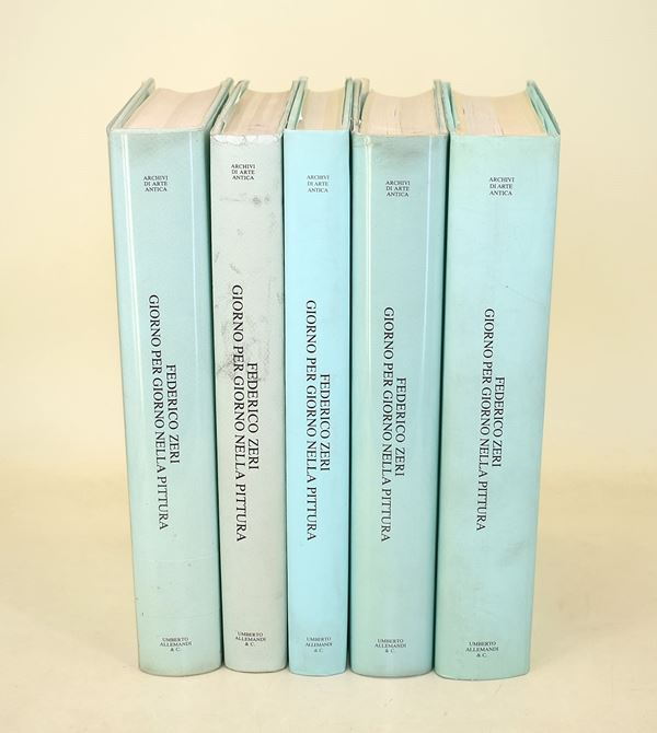 5 cataloghi d’arte di Federico Zeri da Allemandi in copertina rigida in cartonato editoriale con sovracoperta:Giorno per giorno nella pittura. Scritti sull’Arte Toscana dal Trecento al Primo Cinquecento, 1991. Pagine 521.Giorno per giorno nella pittura. Scritti sull’Arte dell’Italia del sei e settecento recensioni e altri saggi, 1998. Pagine 683.Giorno per giorno nella pittura. Scritti sull’Arte del Cinquecento, 1994. Pagine 346.Giorno per giorno nella pittura. Scritti sull’Arte dell’Italia settentrionale dal Trecento al Primo Cinquecento, 1988. Pagine 374.Giorno per giorno nella pittura. Scritti sull’Arte dell’Italia Centrale e Meridionale dal Trecento al Primo Cinquecento, 1992. Pagine 504.