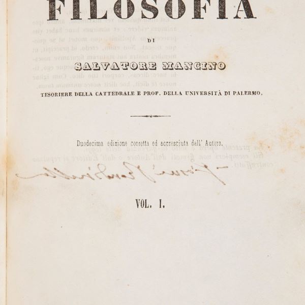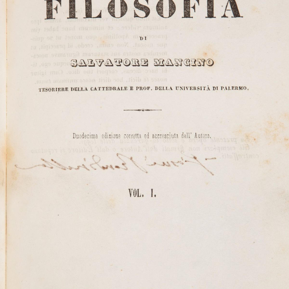 5 libri di filosofia: Vincenzo Gioberti - Della Filosofia della Rivelazione, Napoli/Torino 1861; 2) Salvatore Mancino, Elementi di Filosofia, Napoli 1851 Volumi I e II; 3) Padre Dionisio di San Giovanni in Galdo, Philosophiae Institutiones, Roma 1846 Tomi I e II