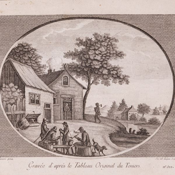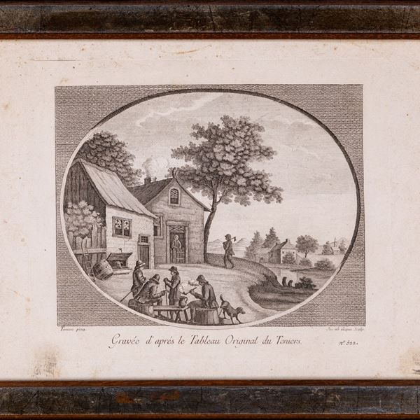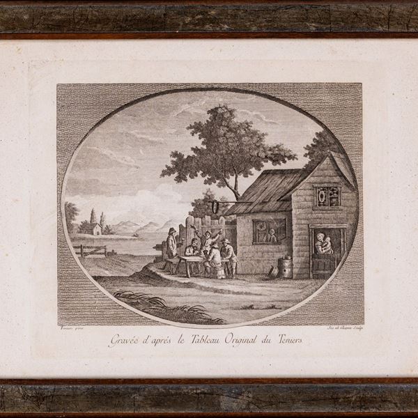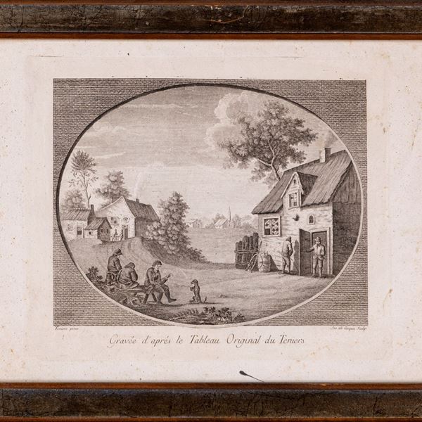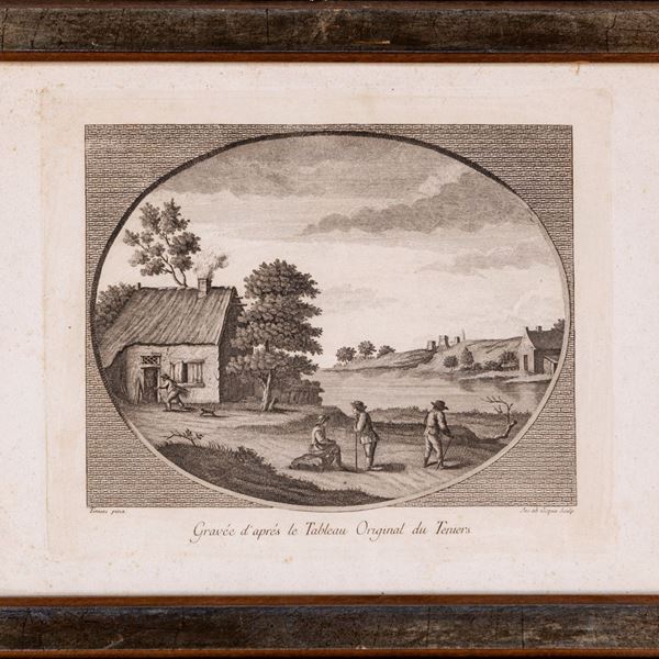 Giuseppe Dall'Acqua - Quattro incisioni da dipinti di David Teniers raffiguranti paesaggi con scene di genere, Fine XVIII - Inizi XIX secolo