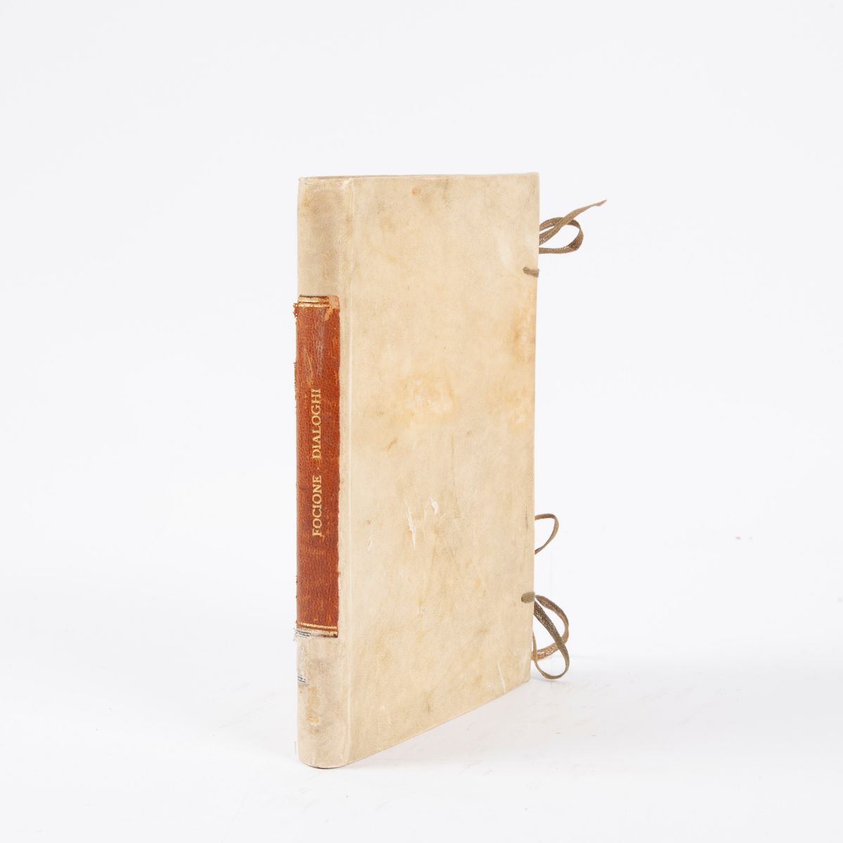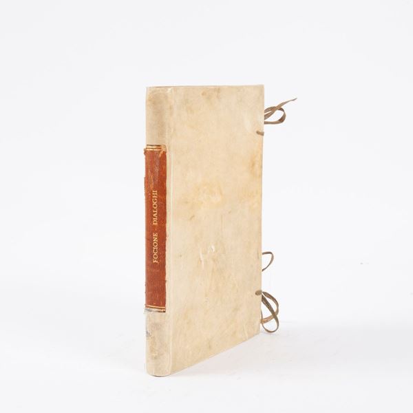 Gabriel Bonnot de Mably (1709-1785), pensatore politico francese, fratello del Condillac, va annoverato tra le principali figure della politica estera del Settecento francese. Nelle sue opere sviluppa concetti politici che a molti osservatori parvero come principi anticipatori delle idee rivoluzionarie, in realtà la visione sociale di Mably era suggerita più da istanze morali che da una visione complessiva di risistemazione socio-economica. Ebbe comunque modo di schierarsi con decisione contro il dispotismo illuminato dei fisiocrati caldeggiando lo sviluppo di una monarchia sorretta da istituzioni repubblicane. Quest'opera edita per la prima volta in Francia nel 1763 si basa, secondo quanto sostiene Mably, sulla scoperta di un manoscritto antico a Montecassino in realtà pare che esso non sia mai esistito. In fine le pure interessanti "Dichiarazioni di Imperatori della Cina". Legatura artistica in piena pergamena con lacci in stile realizzata alla metà del XX secolo con tassello in pelle di epoca successiva con titolo in oro.