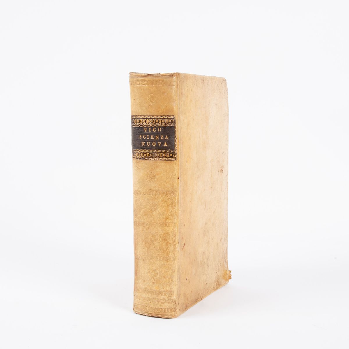 In 8°. Ritratto dell'autore in antiporta. Legatura in piena pergamena coeva con tassello in pelle e fregi in oro al dorso