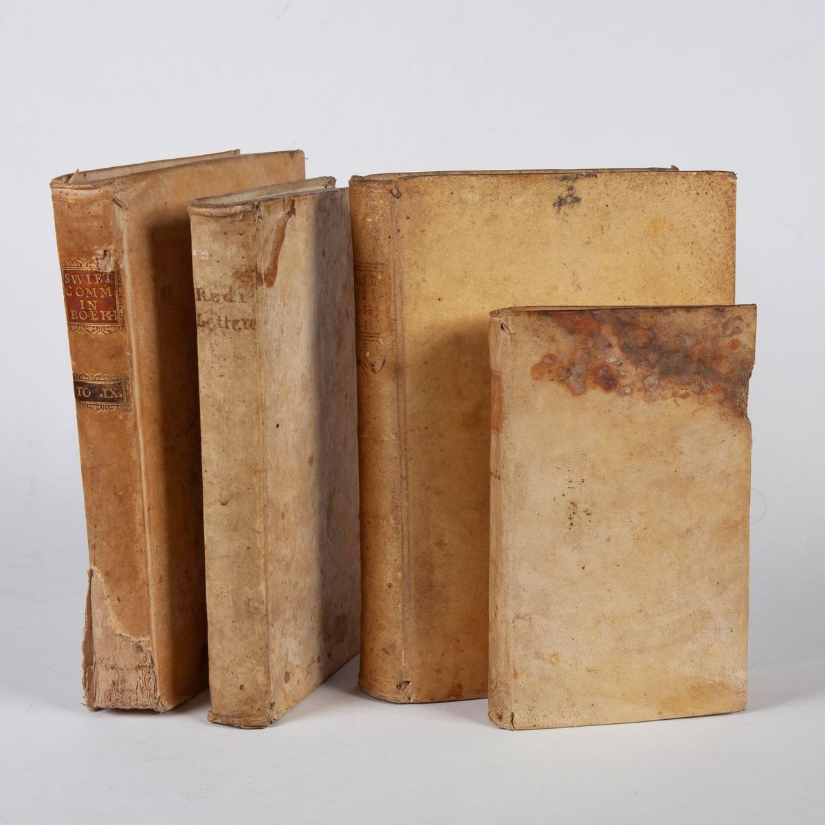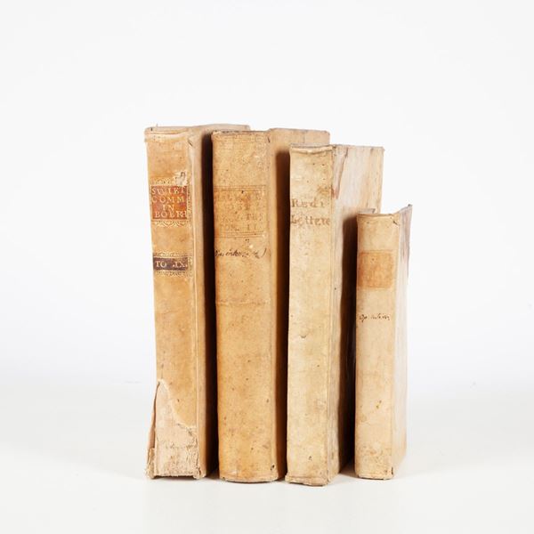 Lotto di quattro volumi del XVIII secolo con legature in pergamena