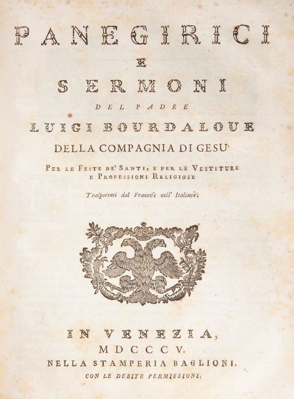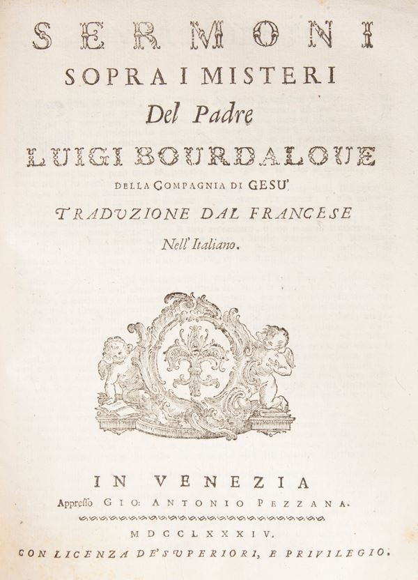 Luigi Bourdaloue 4 opere - Prediche quaresimali. Baglioni, Venezia 1802; Sermoni sopra i misteri. Pezzana, Venezia 1784; Panegirici e sermoni. Baglioni, Venezia 1805; Prediche recitate in due avventi. Baglioni, Venezia 1824