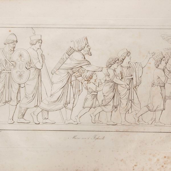 Bertel Thorwaldsen - Album dell'inizio del XIX secolo contenente 17 acquaforti disegnate da Ferdinando Mori riproducenti bassorilievi di Bertel Thorvaldsen