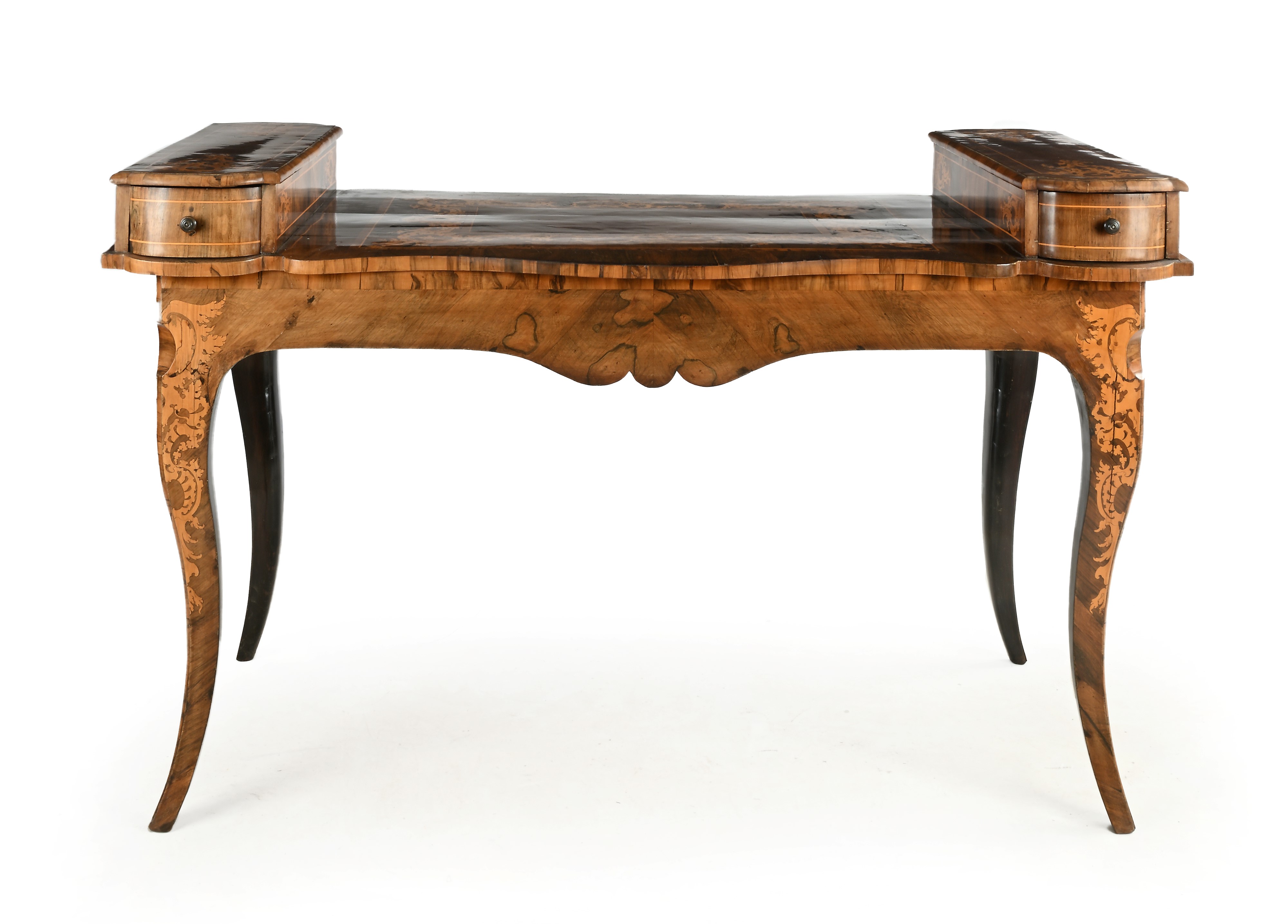 Scrivania da centro in legno intarsiato, Roma, XVIII secolo