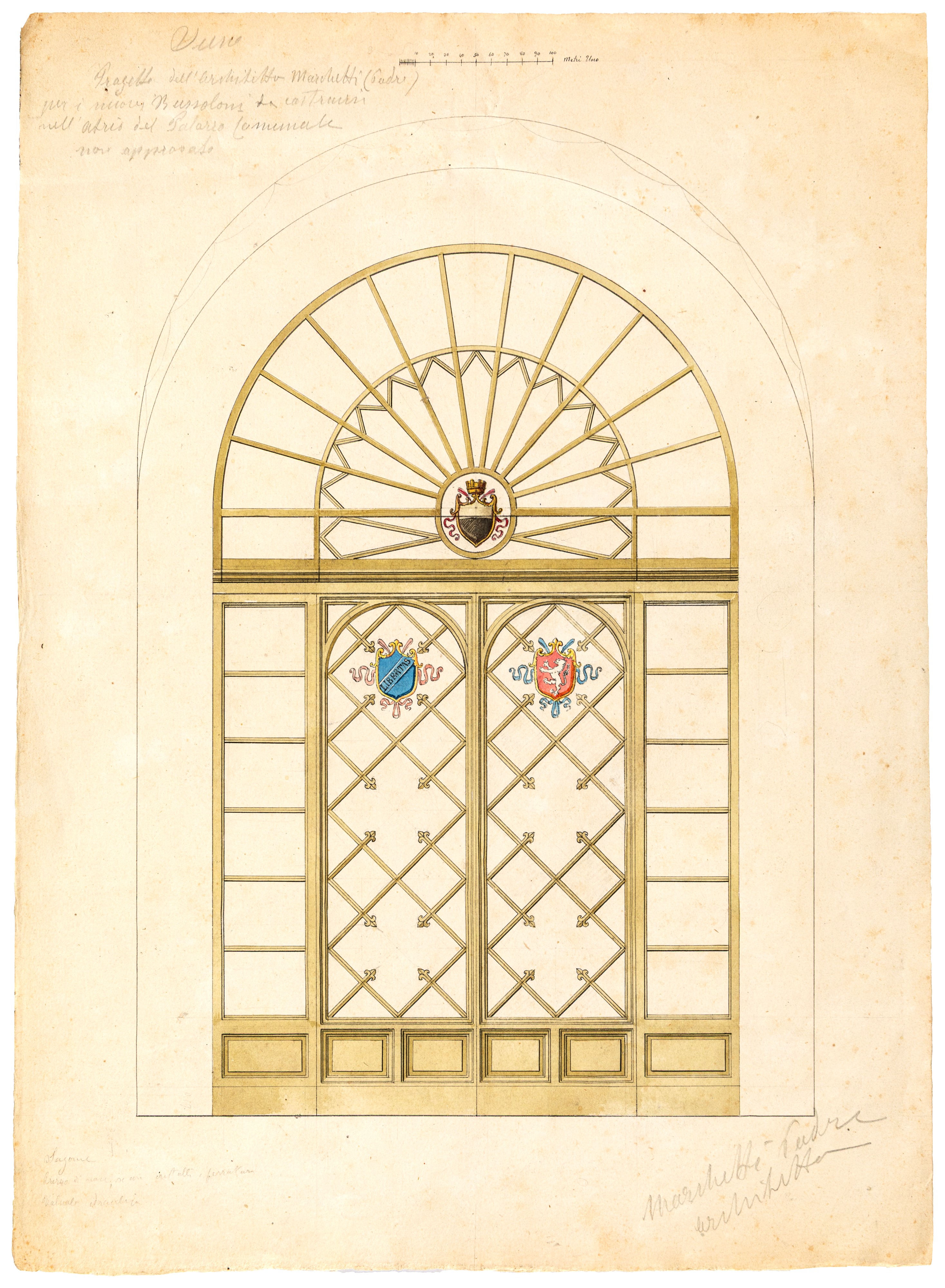 Progetto dell'architetto Marchetti (padre) per i nuovi bussoloni da costruire nell'atrio del Palazzo Comunale non approvato
