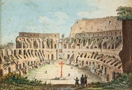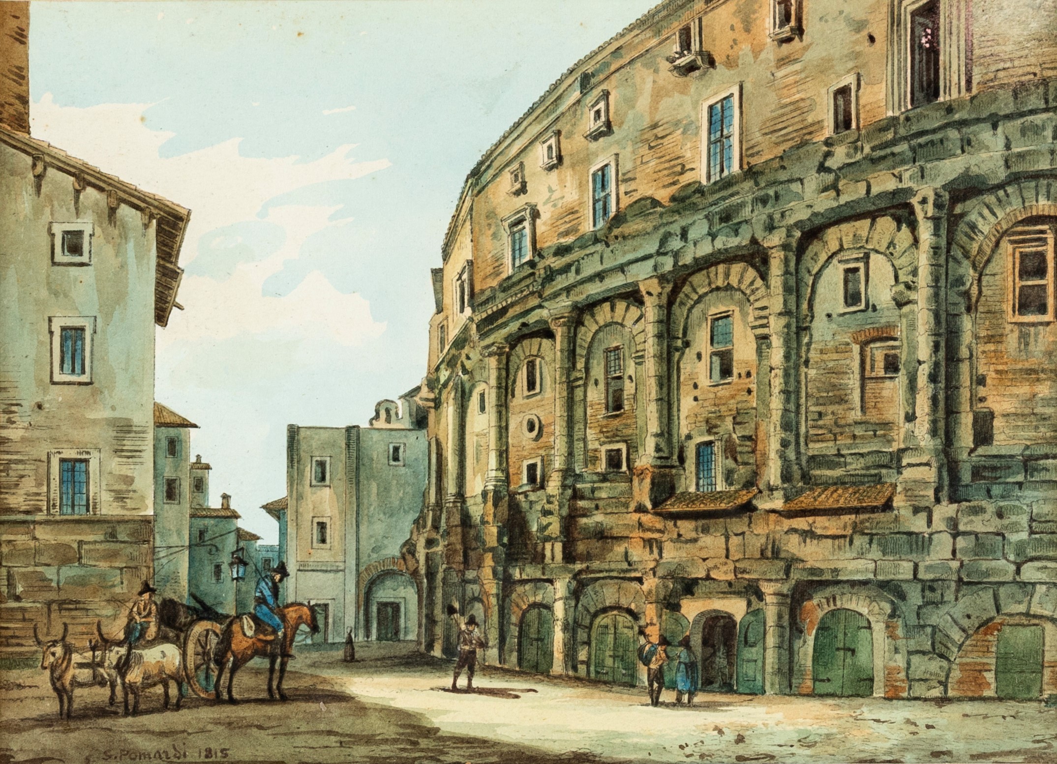 a) Veduta interna dell'anfiteatro Flavio b) Veduta di Piazza del Popolo c) Veduta esterna del teatro Marcello, 1815