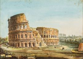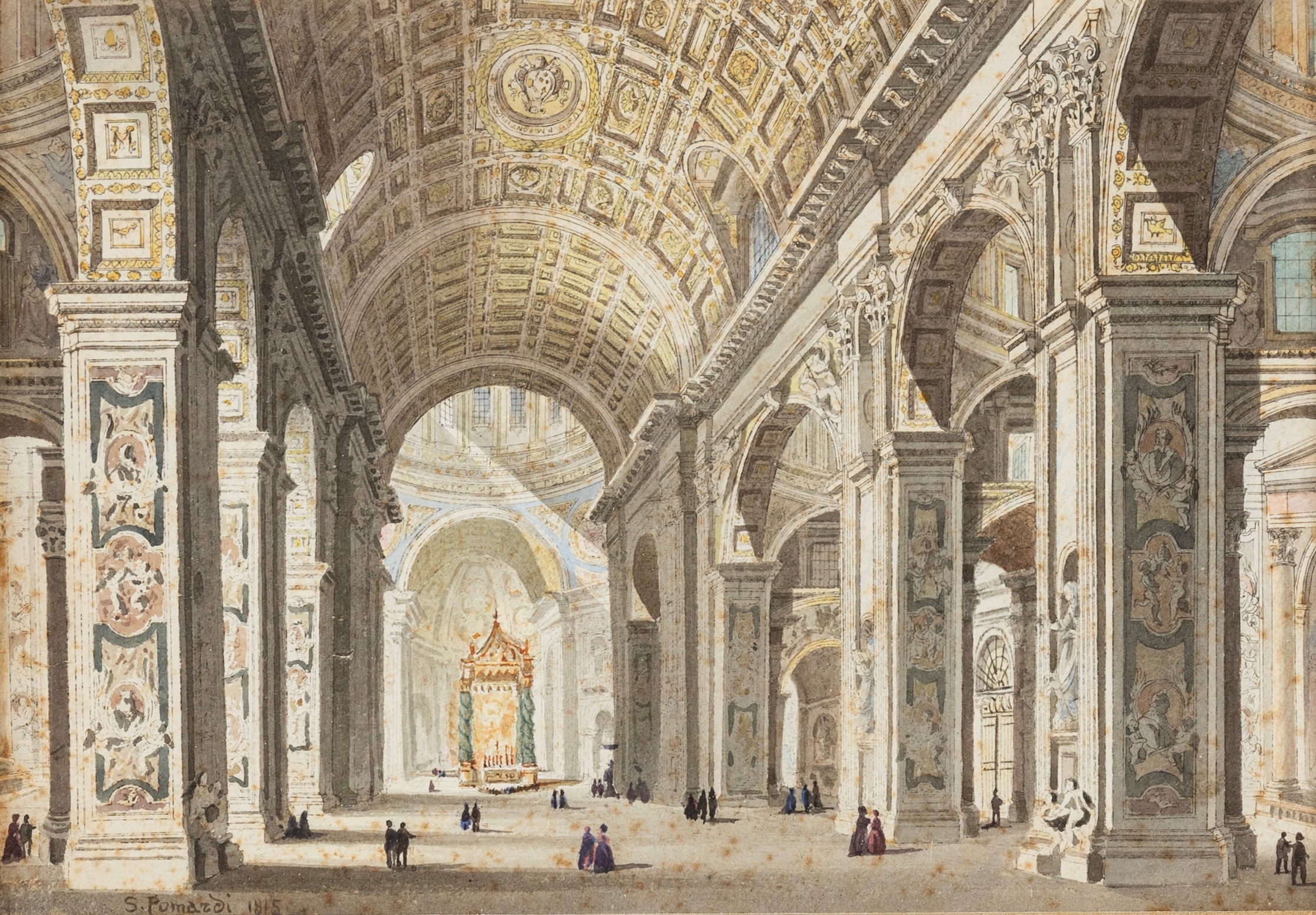 Veduta interna della Basilica di San Pietro in Vaticano - Veduta del Tevere con l'Isola Tiberina e i ponti Cestio e Fabricio - Veduta esterna dell'Anfiteatro Flavio, 1815 - 1820