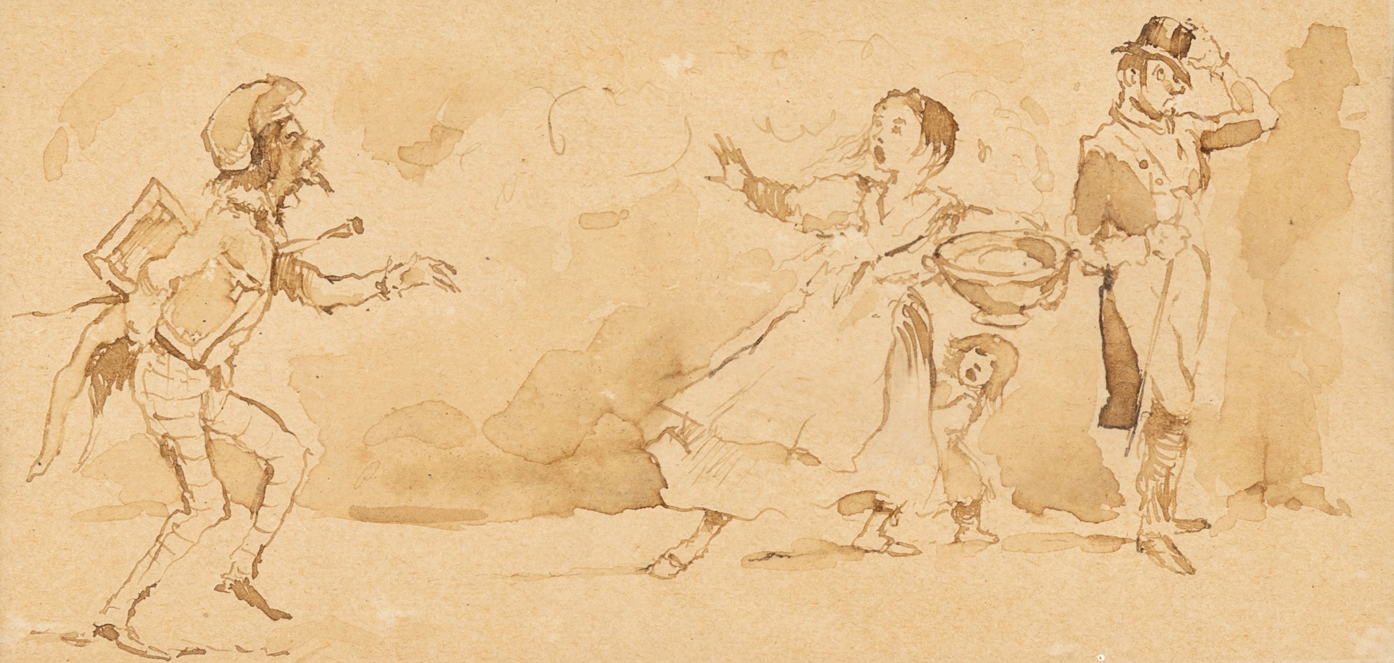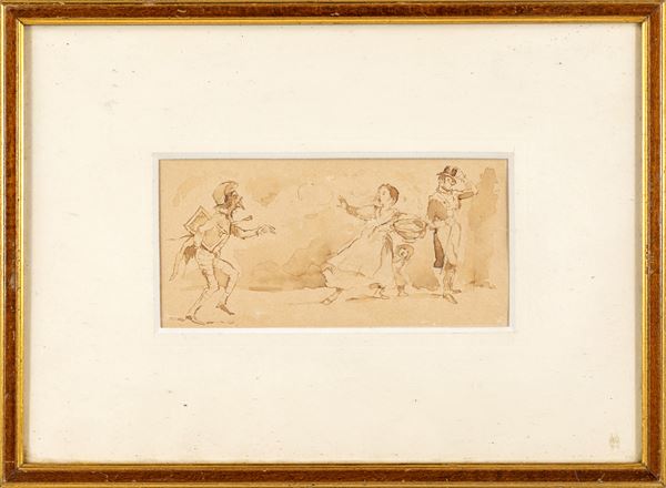 Inchiostro bruno e inchiostro acquerellato su carta