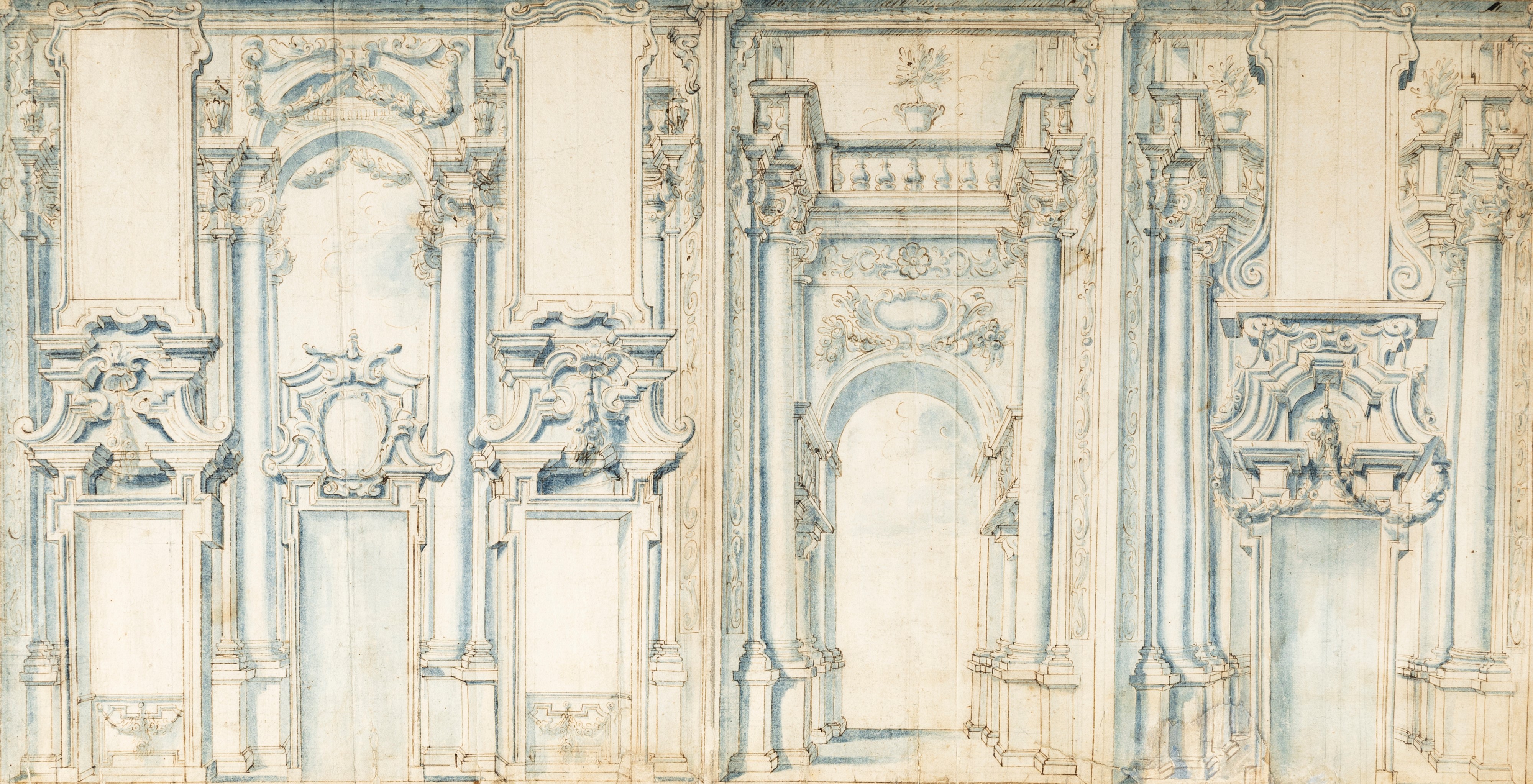 Penna, inchiostro bruno, inchiostro acquerellato grigio e pietra nera su carta