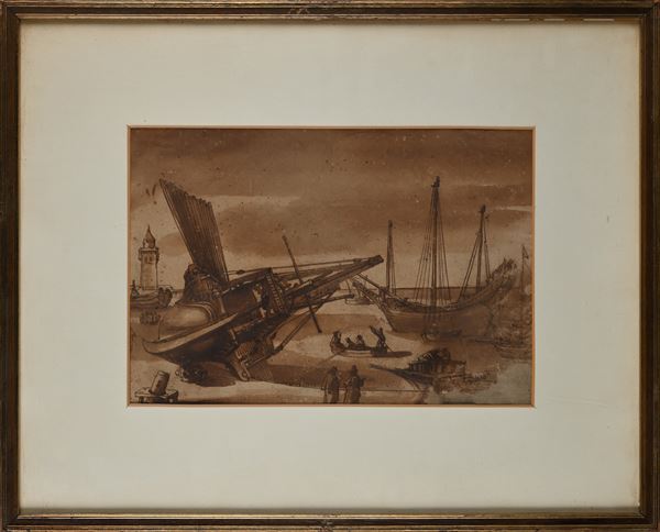 penna e inchiostro bruno, pennello e inchiostro acquarellato e pietra nera su carta