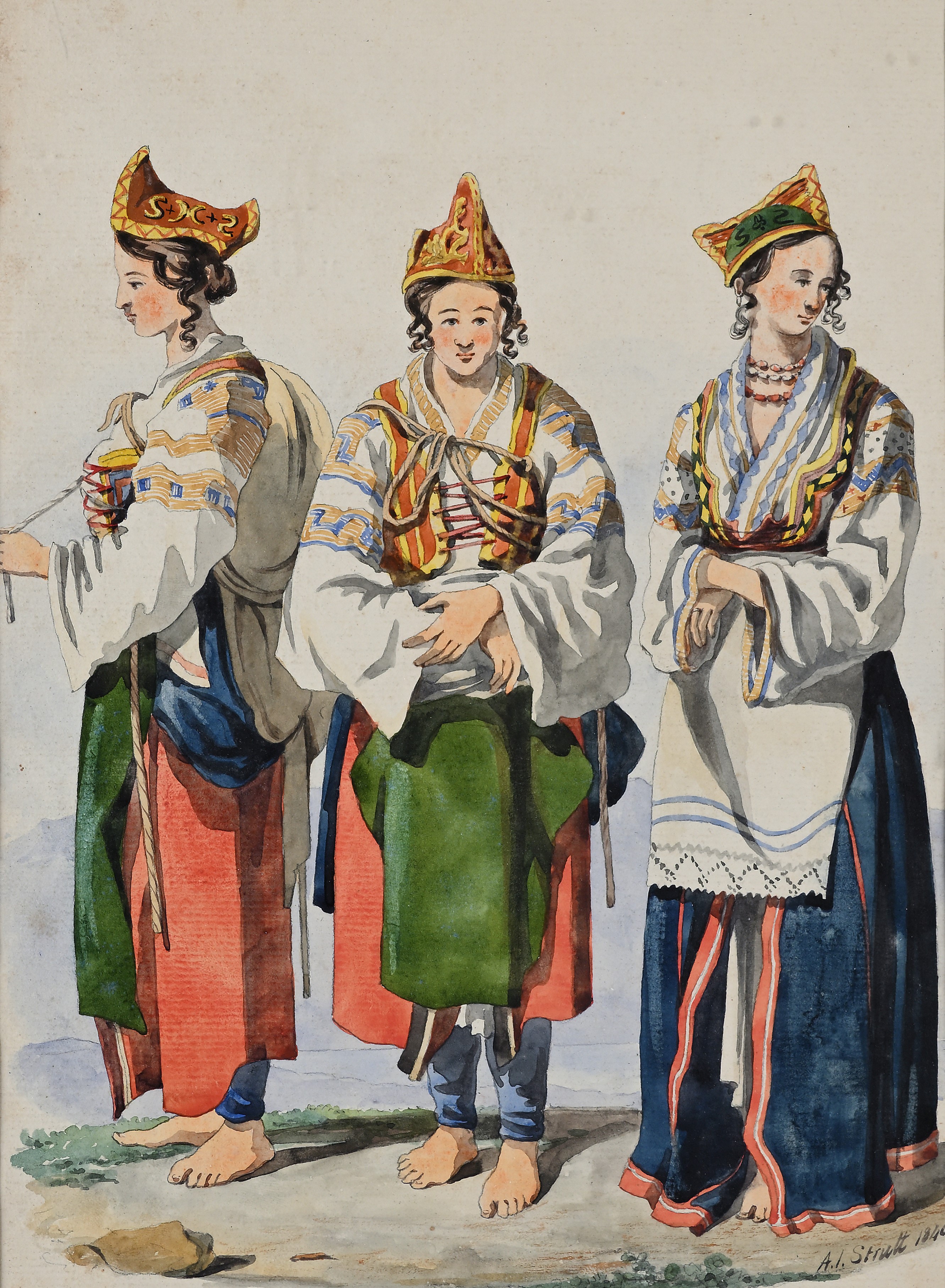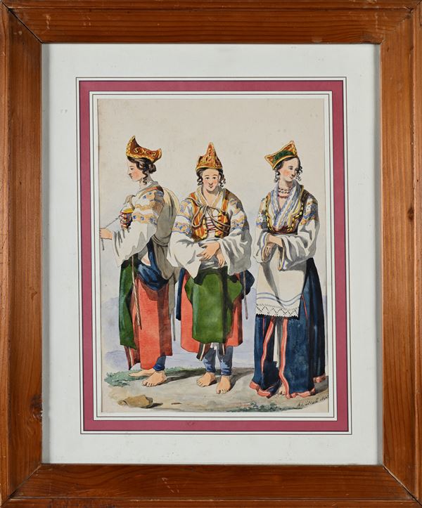 Studi di popolane in costumi tradizionali, 1840