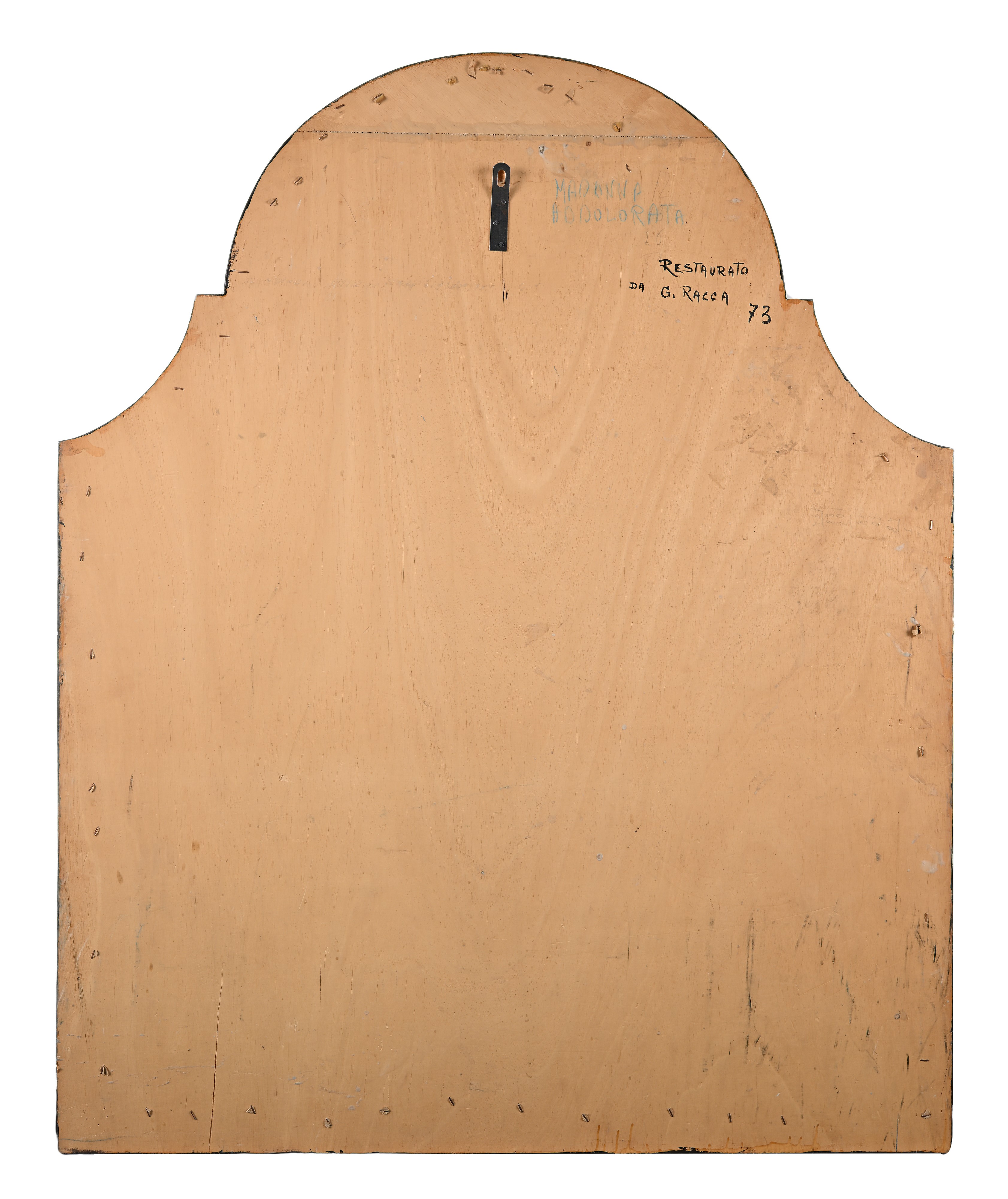 Raffigurazione devozionale della Vergine Addolorata, colta in atteggiamento meditativo e dolente, con la corona di spine tra le mani quale simbolo della Passione. La composizione sobria e l’intensità contenuta dell’espressione riflettono la sensibilità tardo-settecentesca, tra eredità barocca e gusto classicheggiante.