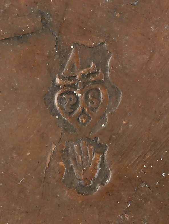 Simbolo inciso sul retro con iniziali P. S.
