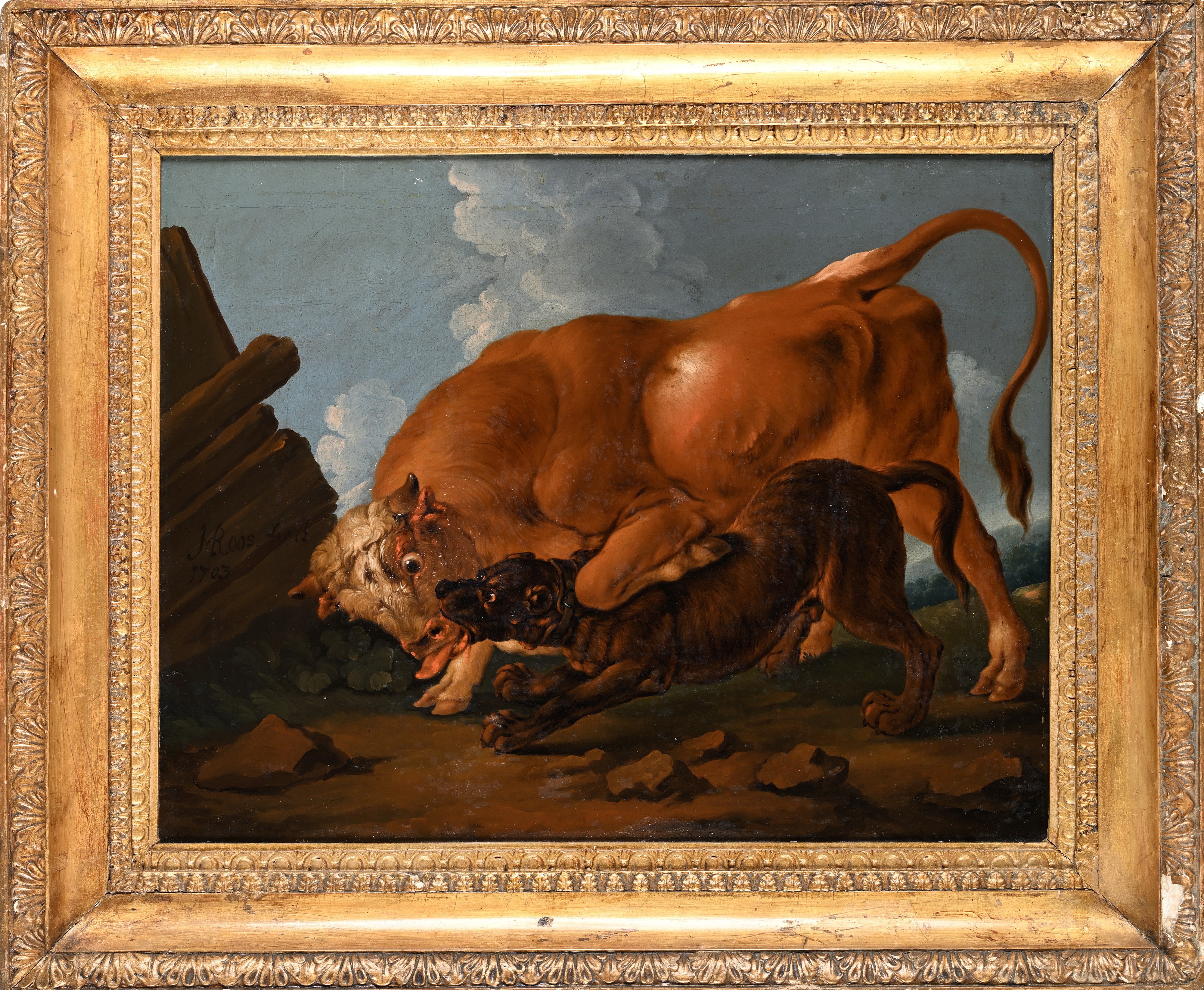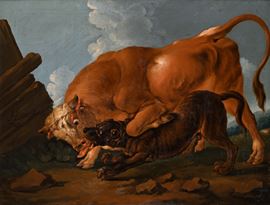 Lotta tra cane e toro Firmato J Roos fecit e datato 1703