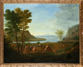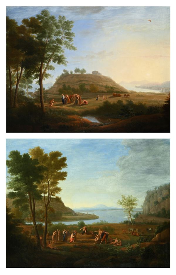 Coppia di paesaggi - Ulisse e Nausica e Apollo e Marsia