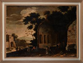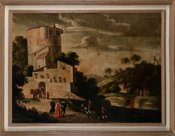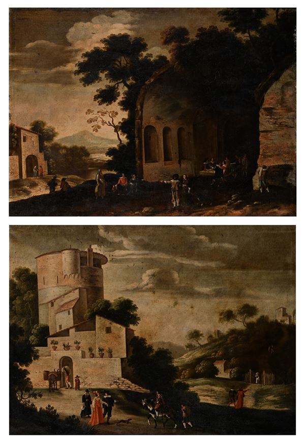 Coppia di paesaggi con figure