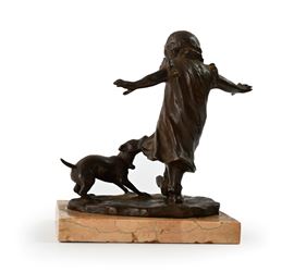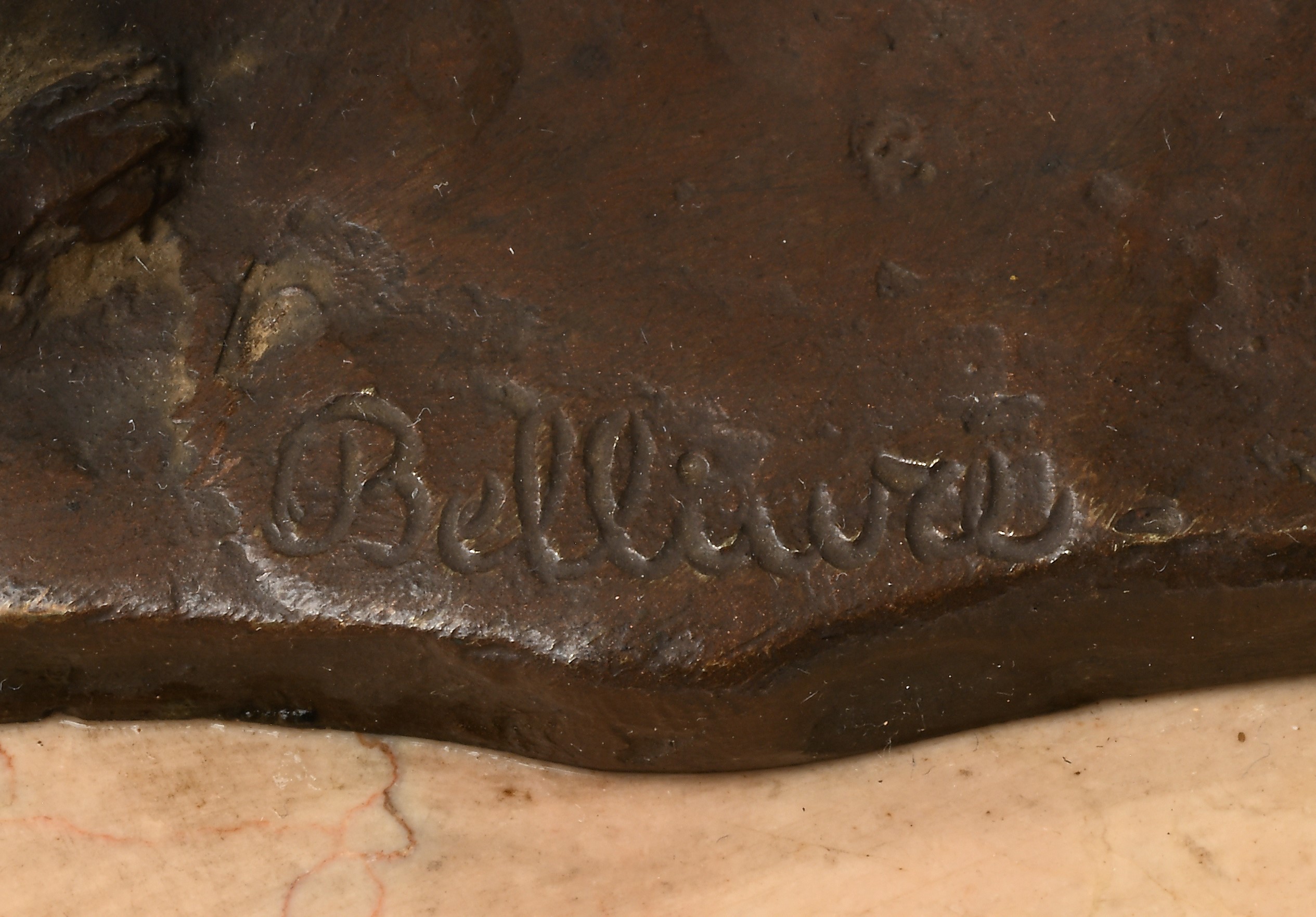 basso supporto rettangolare in marmo. Firma incussa sulla base: Benlliure