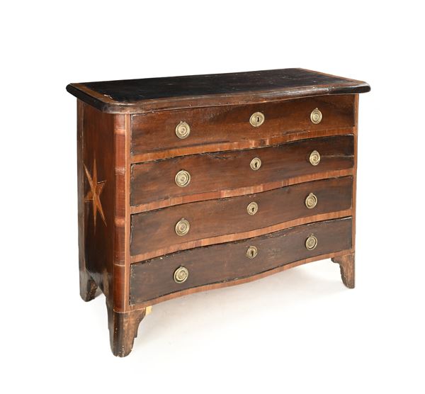 Cassettone impiallacciato in mogano con stelle intarsiate disposte sui fianchi, XIX secolo