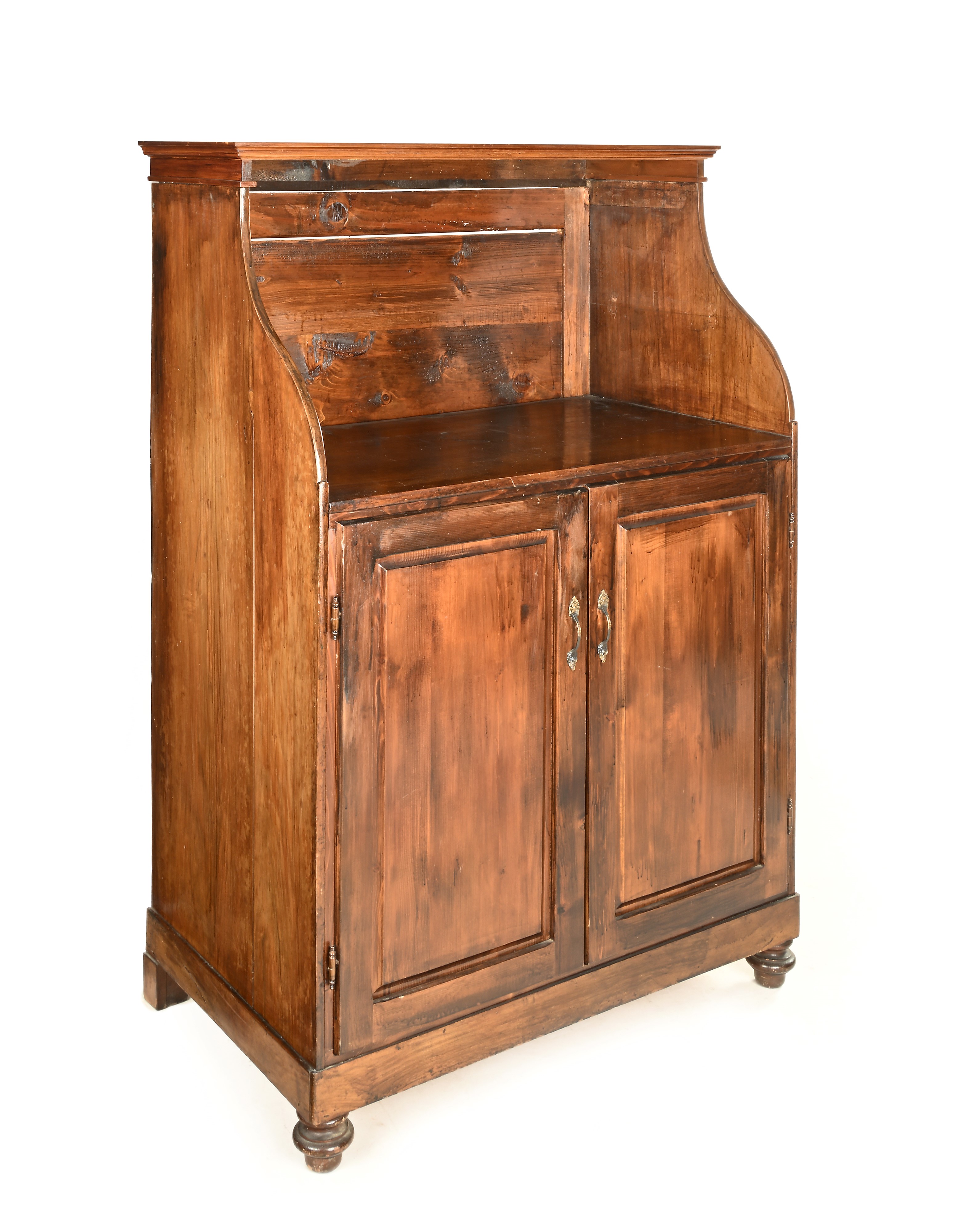 di linea squadrata su piedi a trottola, reca due ante frontali e poggia su piedi a trottola
