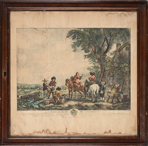 da un dipinto di Philips Wouverman. Racchiuso entro un'anta in legno con cornice a cassetta e serratura lungo il profilo sinistro. Difetti