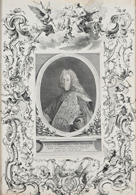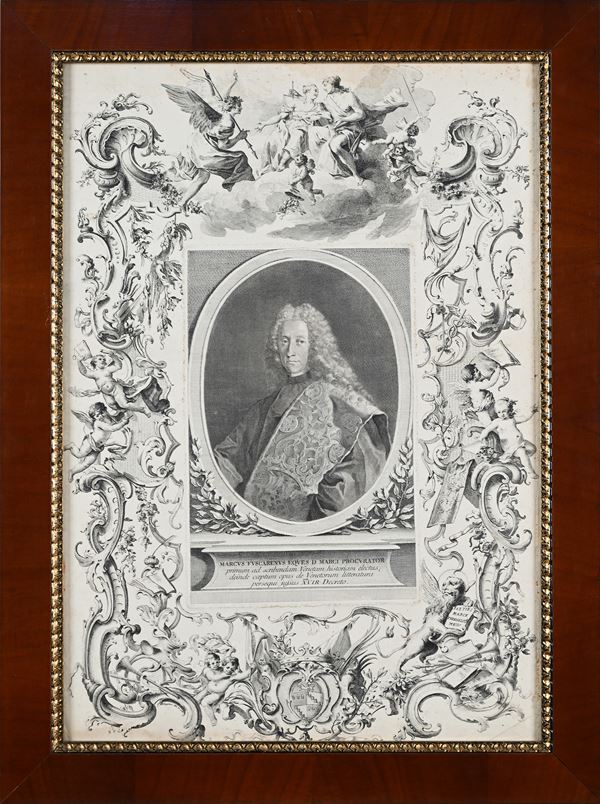 Ritratto di Marco Foscarini, procuratore di San Marco, circondato da eleborati motivi barocchi