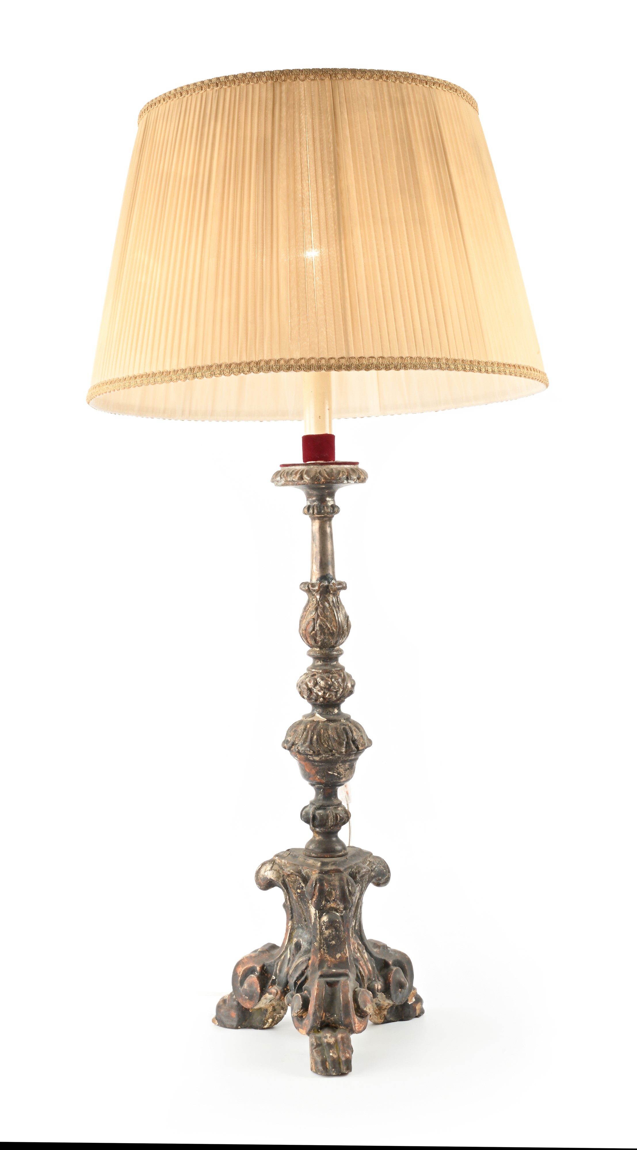 Torciera in legno argentato montata a lampada