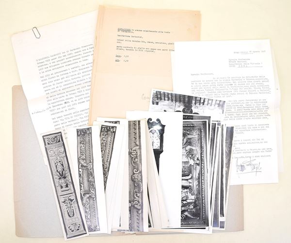 Busta nominata “Cartoni arazzi dei Castelli”, contenente fotografie annotate da Sestieri e un documento dattiloscritto.