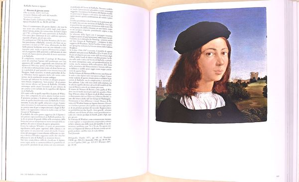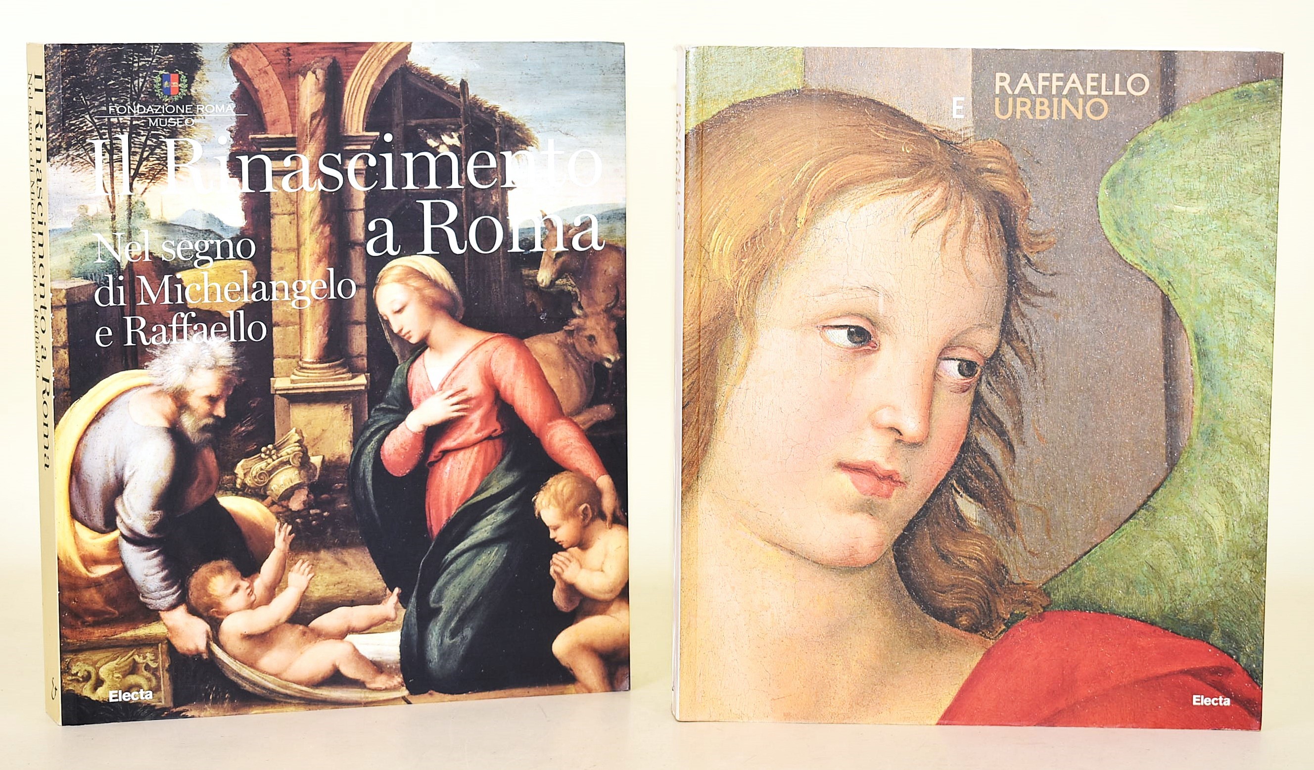 Il Rinascimento a Roma. Nel segno di Michelangelo e Raffaello, Milano, Electa, 2011. In-4° (281x242 mm). Pagine: 357. Brossura editoriale. Edizione illustrata. Ottimo stato complessivo. Raffaello e Urbino,Milano, Electa, 2009. In-4° (280x243 mm). Pagine: 342. A cura di Lorenza Mochi Onori. Brossura editoriale. Edizione illustrata. Buono stato complessivo. Due volumi dedicati al contesto artistico del Rinascimento italiano e alla figura di Raffaello. Le pubblicazioni approfondiscono rispettivamente lo sviluppo della cultura figurativa a Roma tra XV e XVI secolo, con particolare attenzione al ruolo di Michelangelo e Raffaello, e il legame tra l’artista urbinate e la sua città natale, analizzandone formazione, opere e ambiente culturale. Volumi riccamente illustrati di interesse storico-artistico.